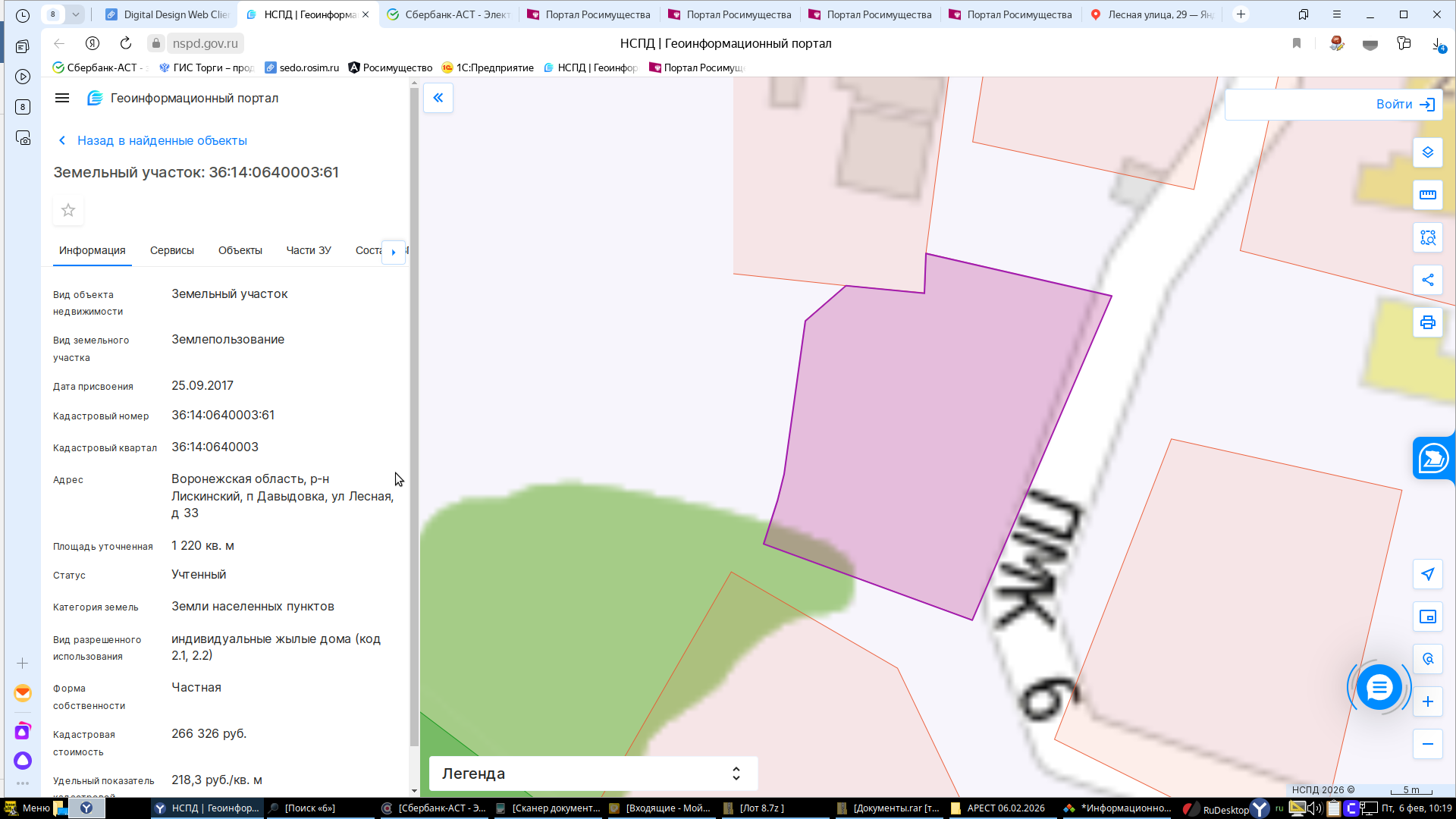 Лот № 8 (повторные торги). Земельный участок площадью 1220 кв. м, кадастровый номер 36:14:0640003:61, категория земель - земли населенных пунктов, вид разрешенного использования – индивидуальные жилые дома, местонахождение: Воронежская обл., Лискинский р-н, п. Давыдовка, ул. Лесная, д. 33. Собственник – Немчина А.В.