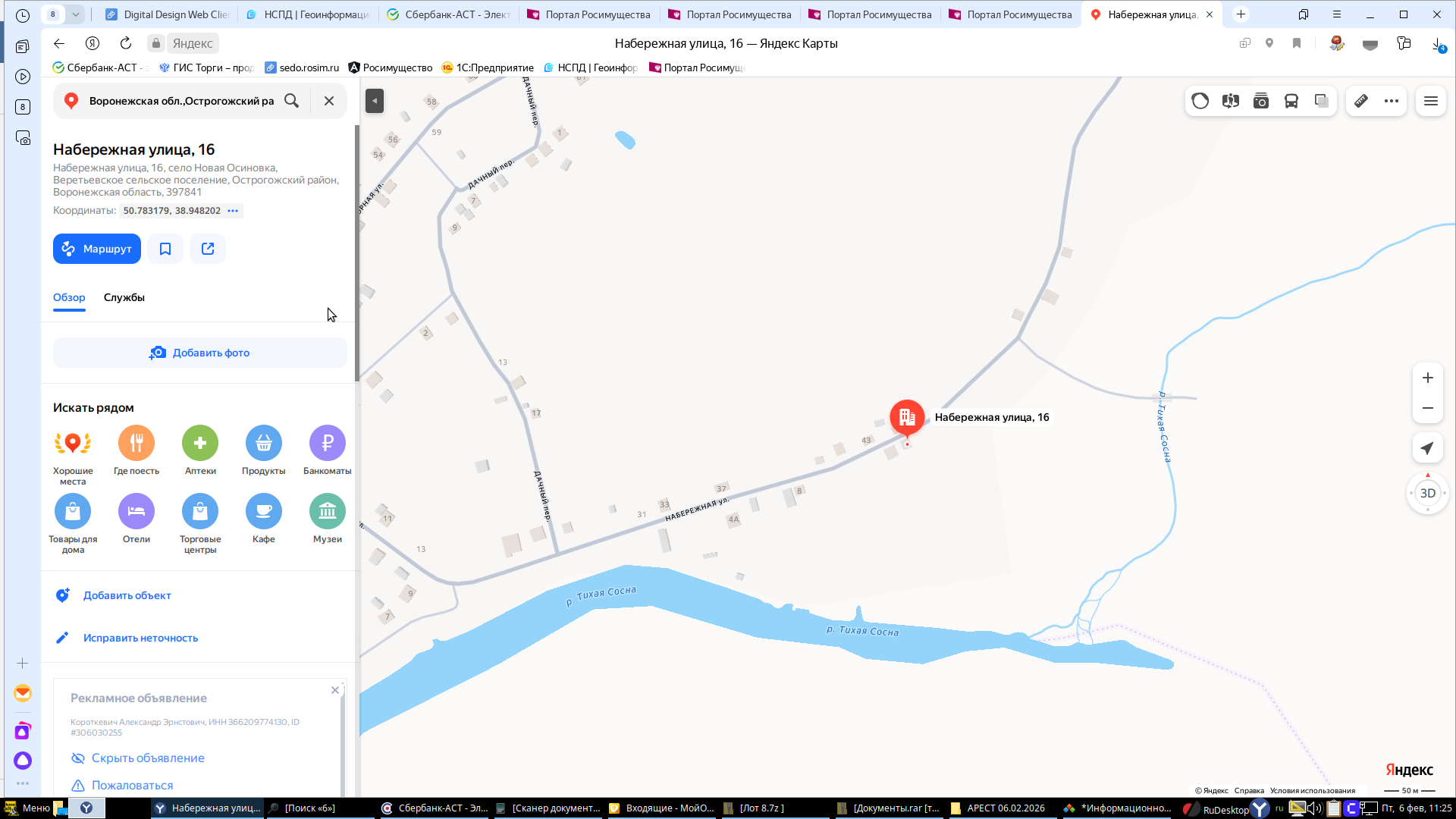 Лот № 14. Жилой дом площадью 31,7 кв. м, кадастровый номер 36:19:1500004:83, земельный участок площадью 761 кв. м, кадастровый номер 36:19:1500004:27, категория земель - земли населенных пунктов, вид разрешенного использования - для ведения личного подсобного хозяйства, местонахождение: Воронежская обл., Острогожский р-н, с. Новая Осиновка, ул. Набережная, д. 16. Собственник - Быкова Т.А.