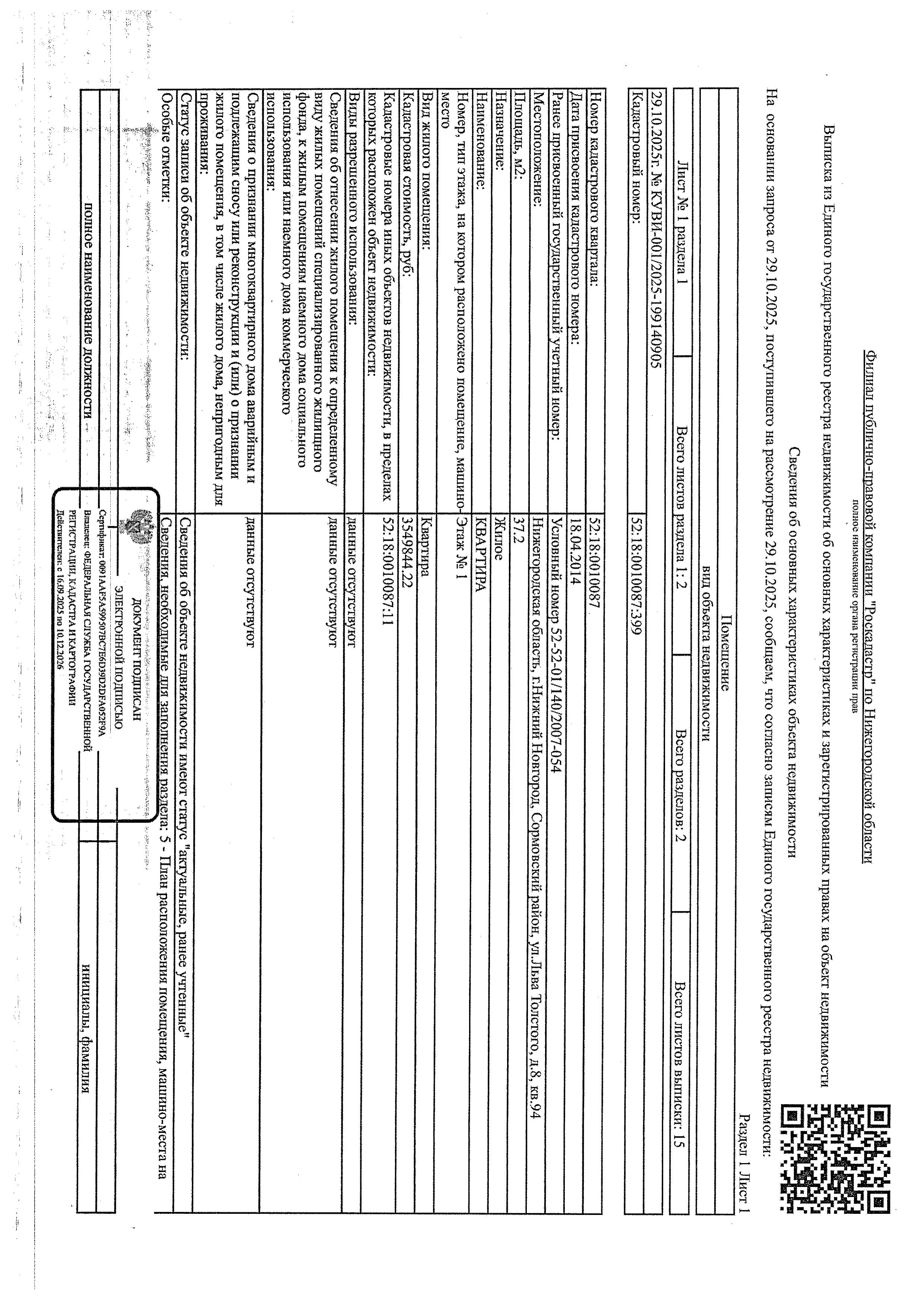 Повторные торги. Квартира общей площадью 37,2 кв. м, назначение - жилое, кадастровый (или условный) номер 52:18:0010087:399. Местоположение: г. Нижний Новгород, ул. Льва Толстого, д. 8, кв. 94, этаж 1