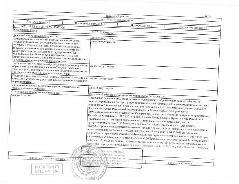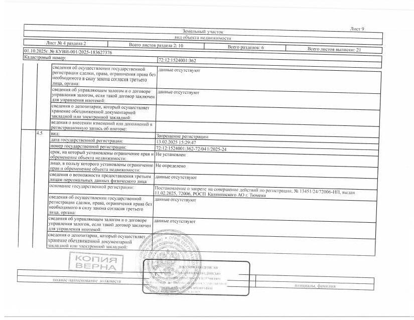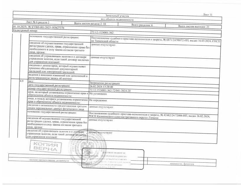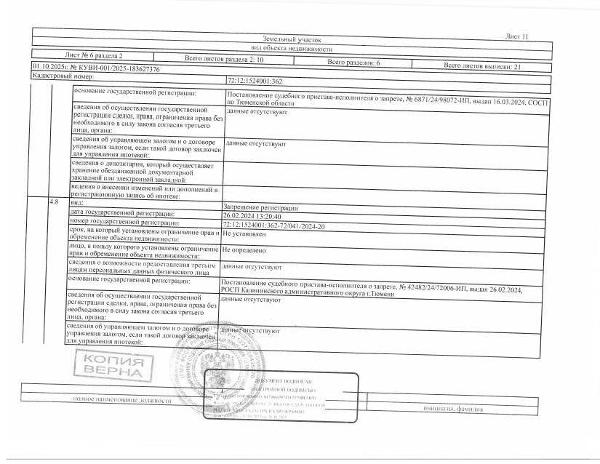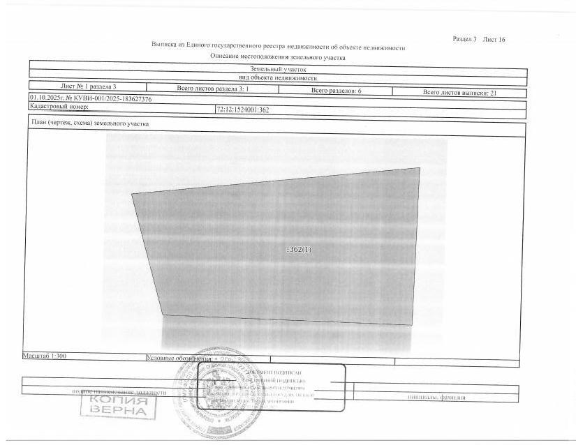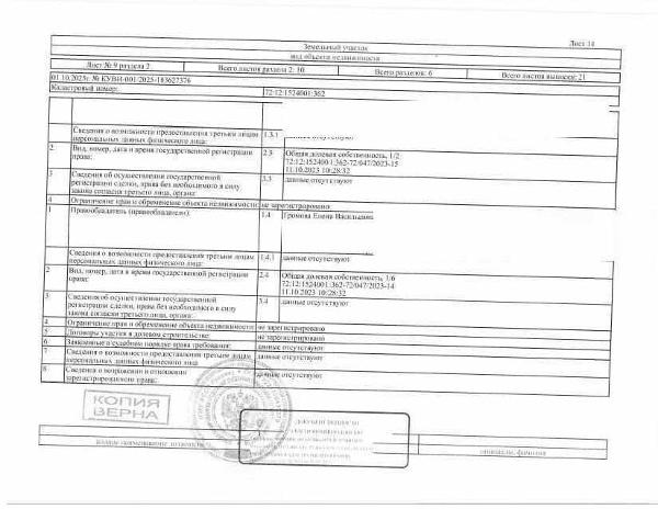 1/6 земельного участка (земли сельхозхозяйственного назначения, для садоводства и огородничества), площадь 954 кв.м., кадастровый номер: 72:12:1524001:362, Нижнетавдинский р-н., СНТ «Фортуна», ул. 14, участок № 614, рег.№ 72-0105-03-ГМУ;