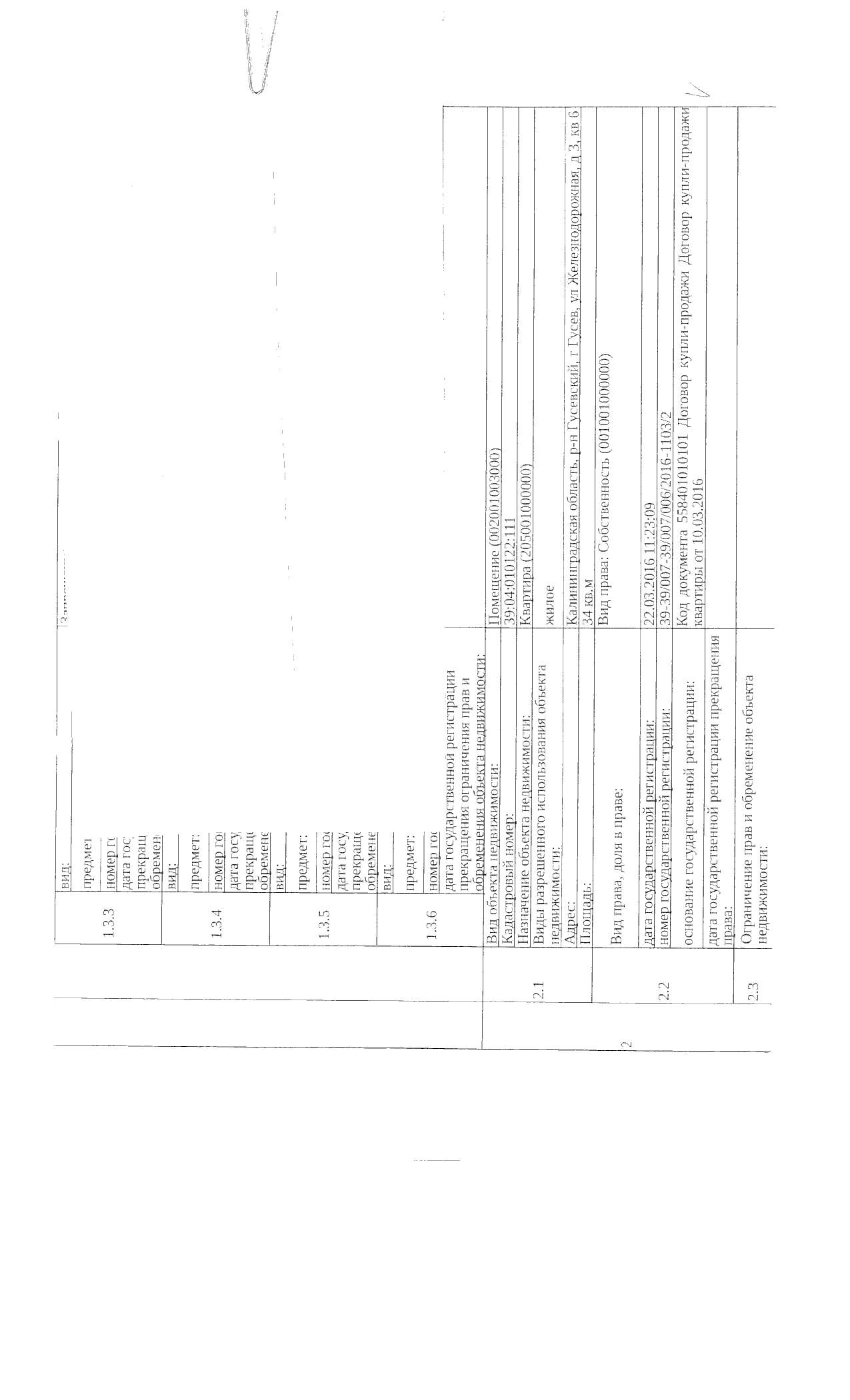 Квартира общей площадью 34 кв. м, кадастровый номер 39:04:010122:111