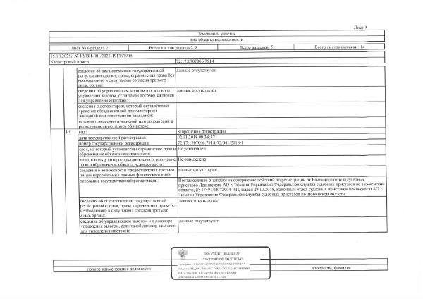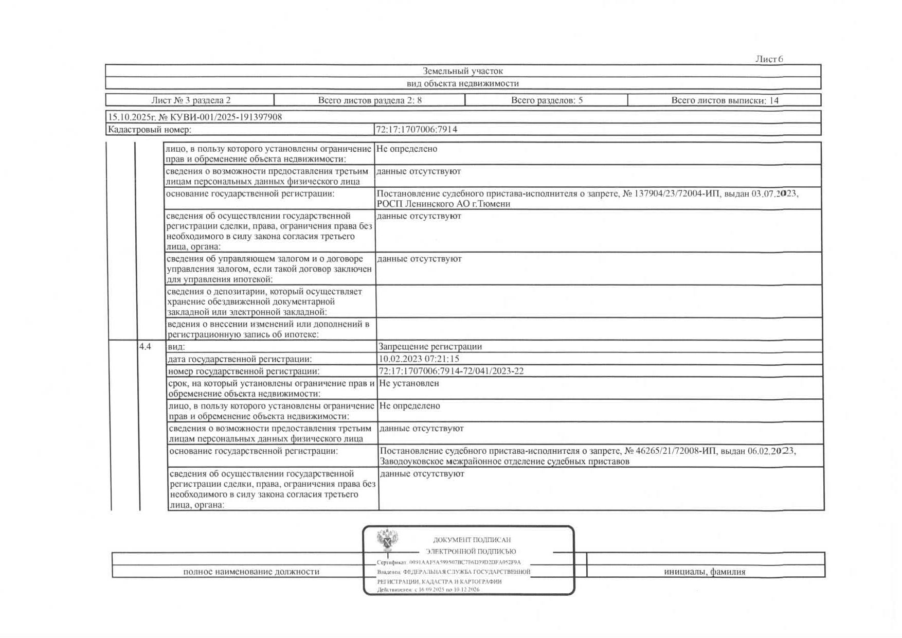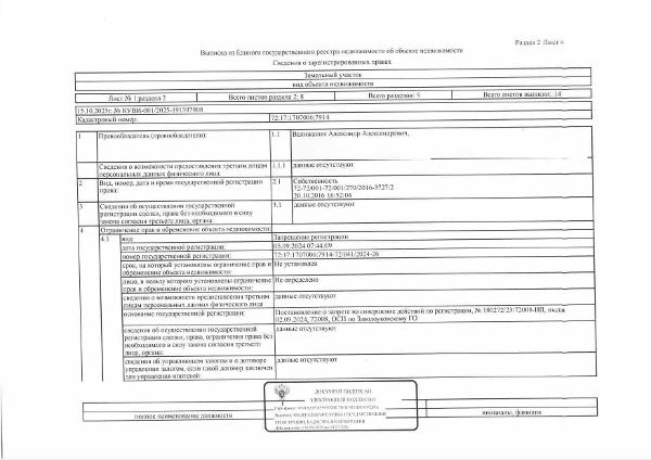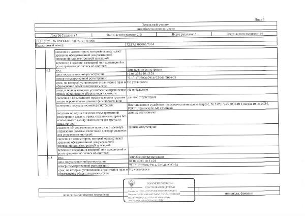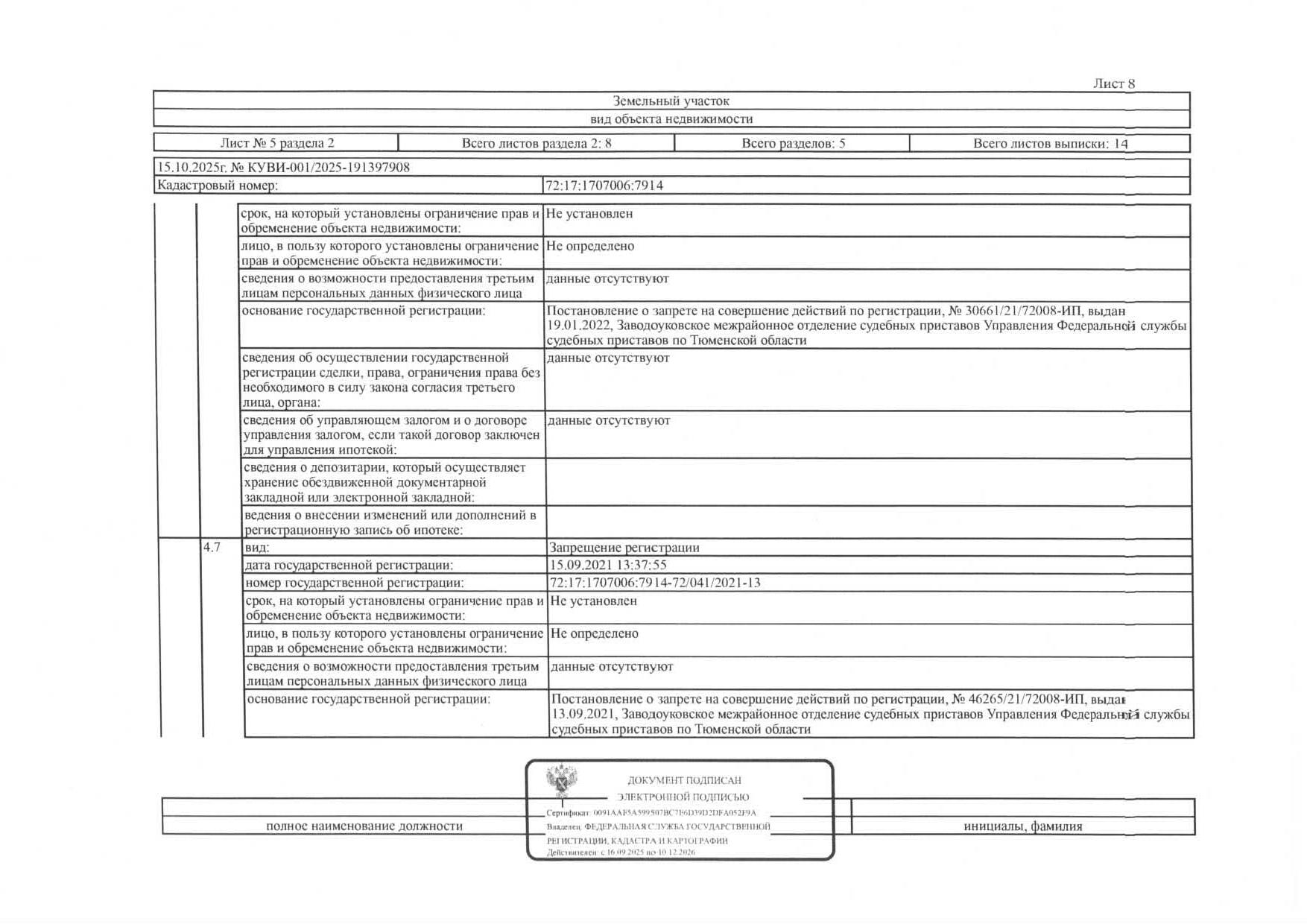 Земельный участок, площадь 895 кв.м., кадастровый номер: 72:17:1707006:7914, г. Тюмень, СНТ "Поле Чудес-2", ул. Ягодная, пр. 8, уч. 274, рег.№ 72-010442(26)