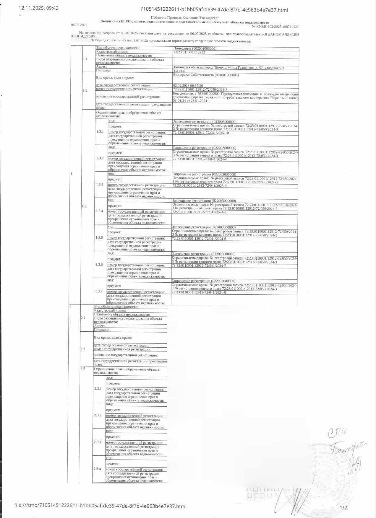 Должник: Богданов А.Л., собственник: Богданов А.Л. Лот: Нежилое помещение (кладовая), площадь 3,4 кв.м., кадастровый номер: 72:23:0110001:12912, г. Тюмень, ул. Газовиков, д.57, кладовая 97А (цокольный этаж), н/ц: 275400 р., з-к: 41310 р., код: 0001, рег.№ 72-010465(26)