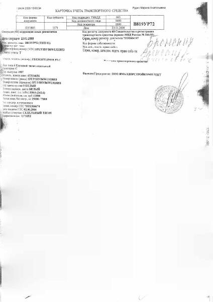 Транспортное средство FREIGHTLINER FLC, 1997 г.в., г/н: В819УР72, VIN 1FUYSSYB6WL933853, полуприцеп 2006 г.в., г/н: АТ134572, VIN X8994251XG0DF4001, рег.№ 72-010506(26)-ГМУ