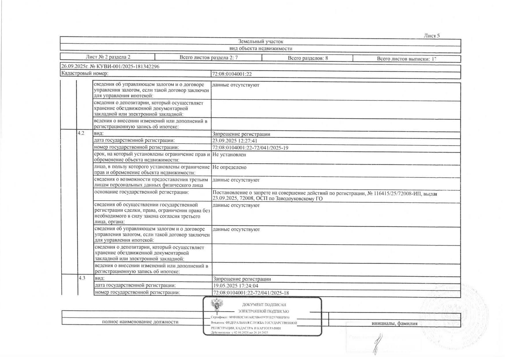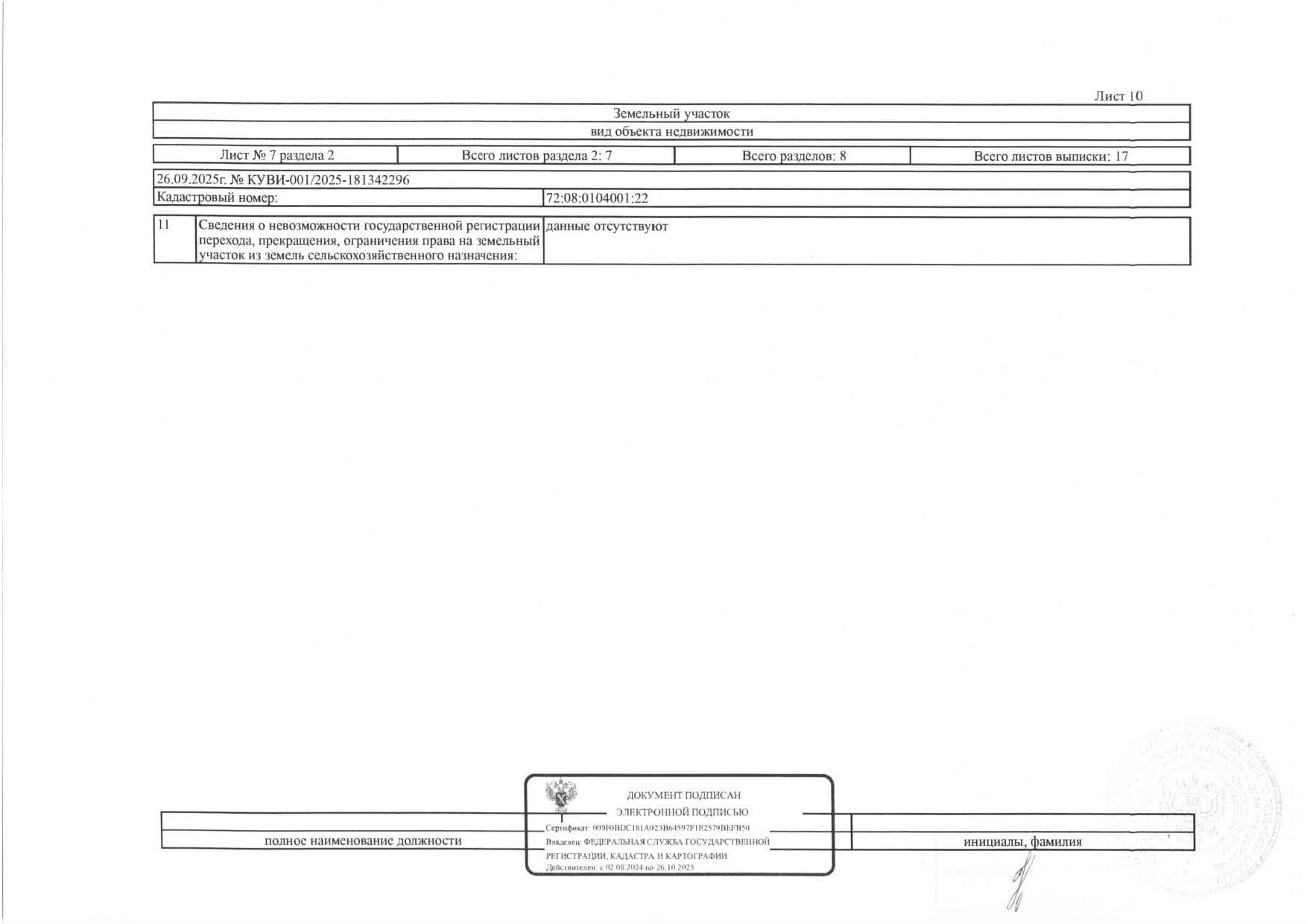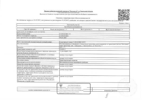 Земельный участок, площадь 425 кв.м., кадастровый номер: 72:08:0104001:22, здание, площадь 54,9 кв.м., кадастровый номер: 72:08:0104001:367, г. Заводоуковск, ул. Пушкина, д. 7 рег.№ 72-0105-20;