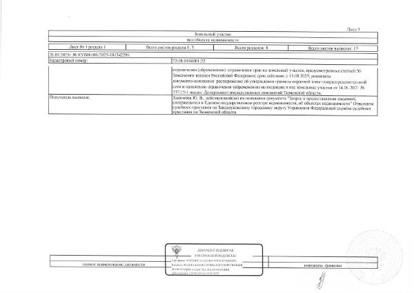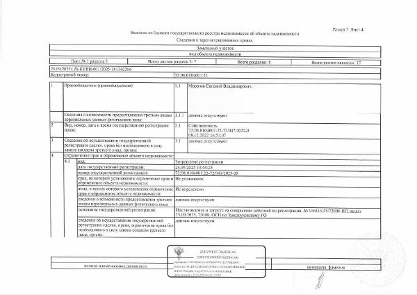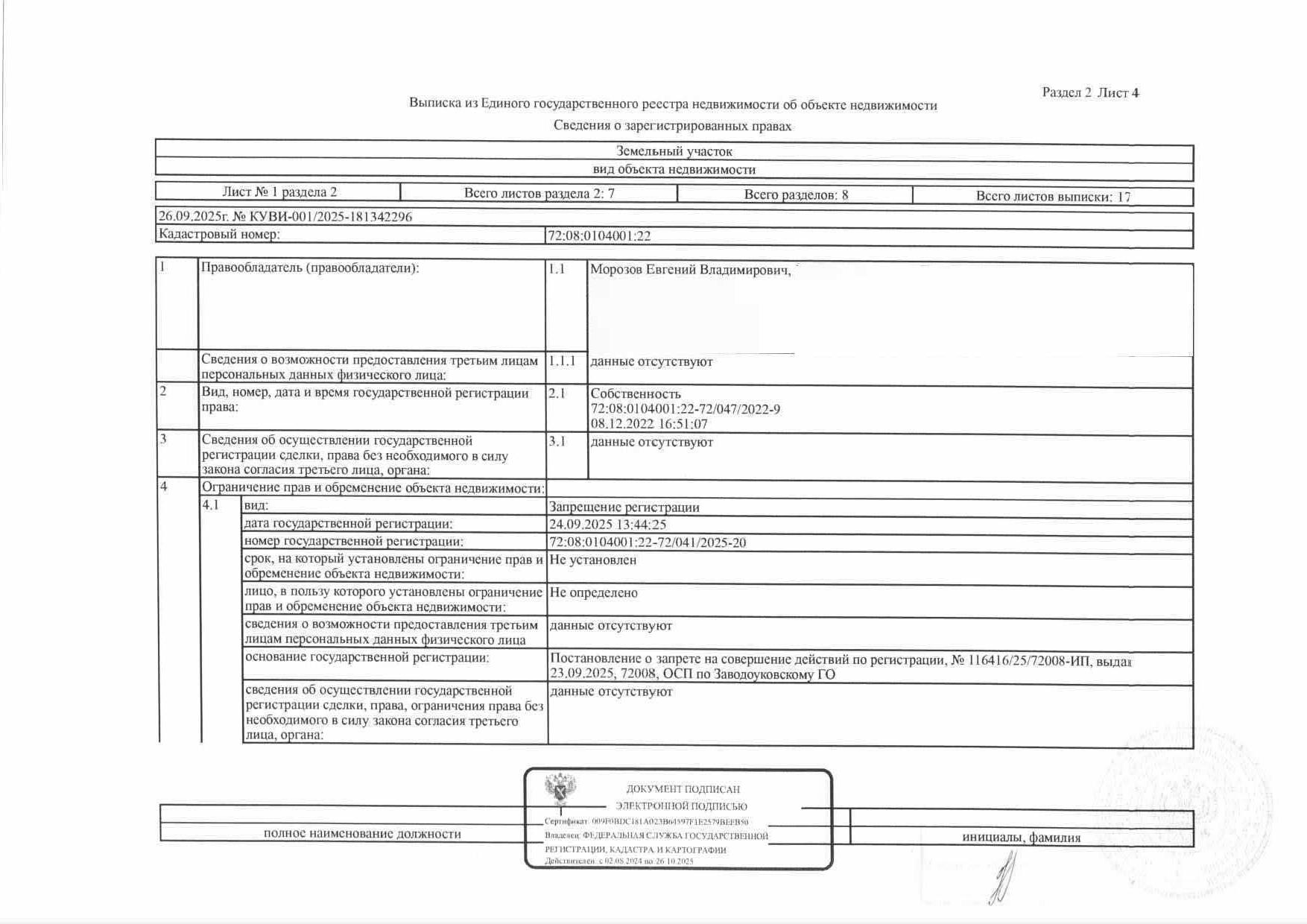 Должник: Морозов Е.В., собственник: Морозов Е.В. Лот: Земельный участок (земли населенных пунктов, для ведения личного подсобного хозяйства), площадь 425 кв.м., кадастровый номер: 72:08:0104001:22, здание (жилой дом), площадь 54,9 кв.м., кадастровый номер: 72:08:0104001:367, г. Заводоуковск, ул. Пушкина, д. 7 (зарегистрировано 2 - взрослых, 1 - ребенок),н/ц: 1958400 р., з-к: 1958 р, код: 0014, рег.№ 72-0105-20;
