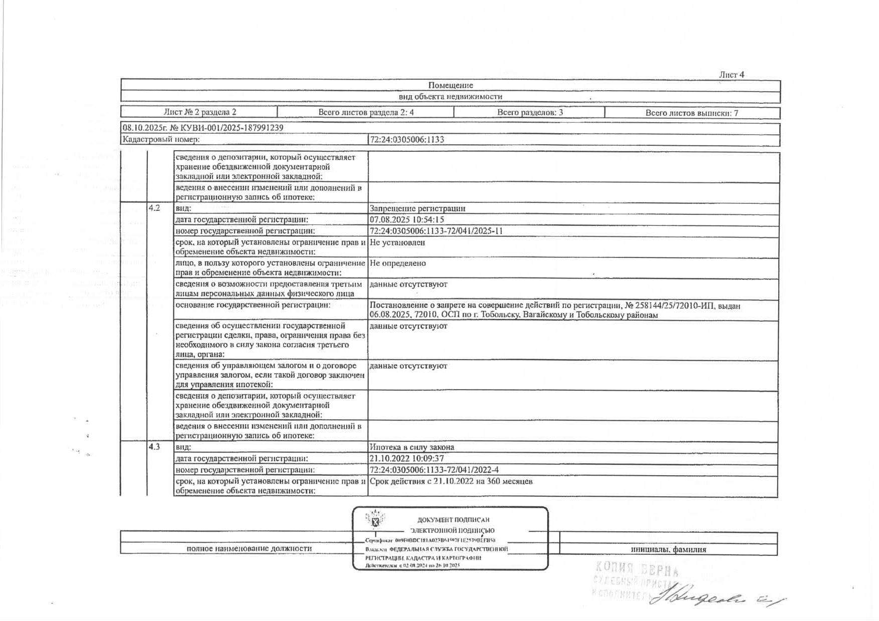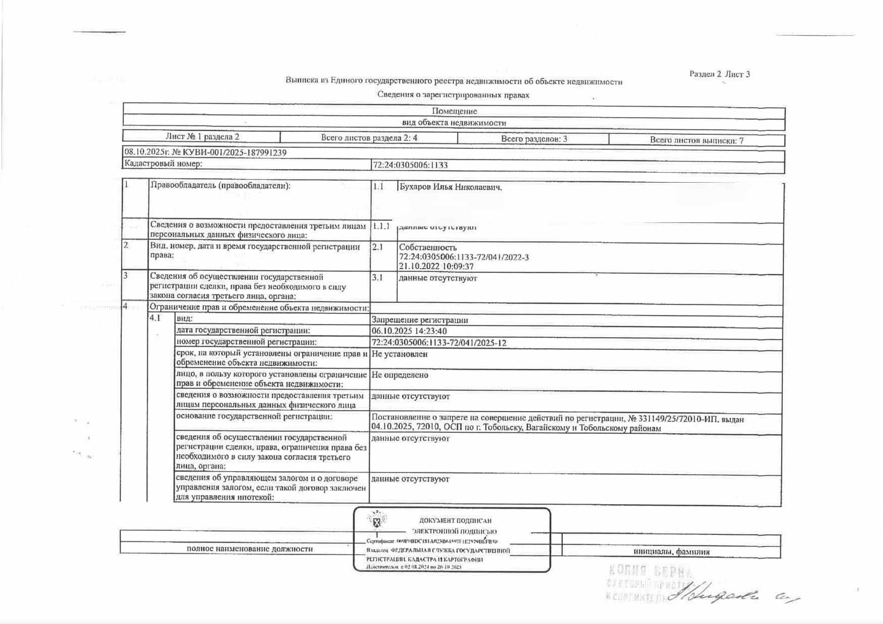 Должник: Бухаров И.Н., собственник: Бухаров И.Н. Лот: Жилое помещение (квартира), площадь 43,9 кв.м., кадастровый номер: 72:24:0305006:1133, г. Тобольск, пер. Рощинский, д. 60, кв. 23 (зарегистрировано 2-взрослых, 2-ребенка, задолженность по капитальному ремонту на 13.10.2025 составляет -10 т.р),н/ц: 1342718,82 р., з-к: 1342 р, код: 0014, рег.№ 72-0105-66;