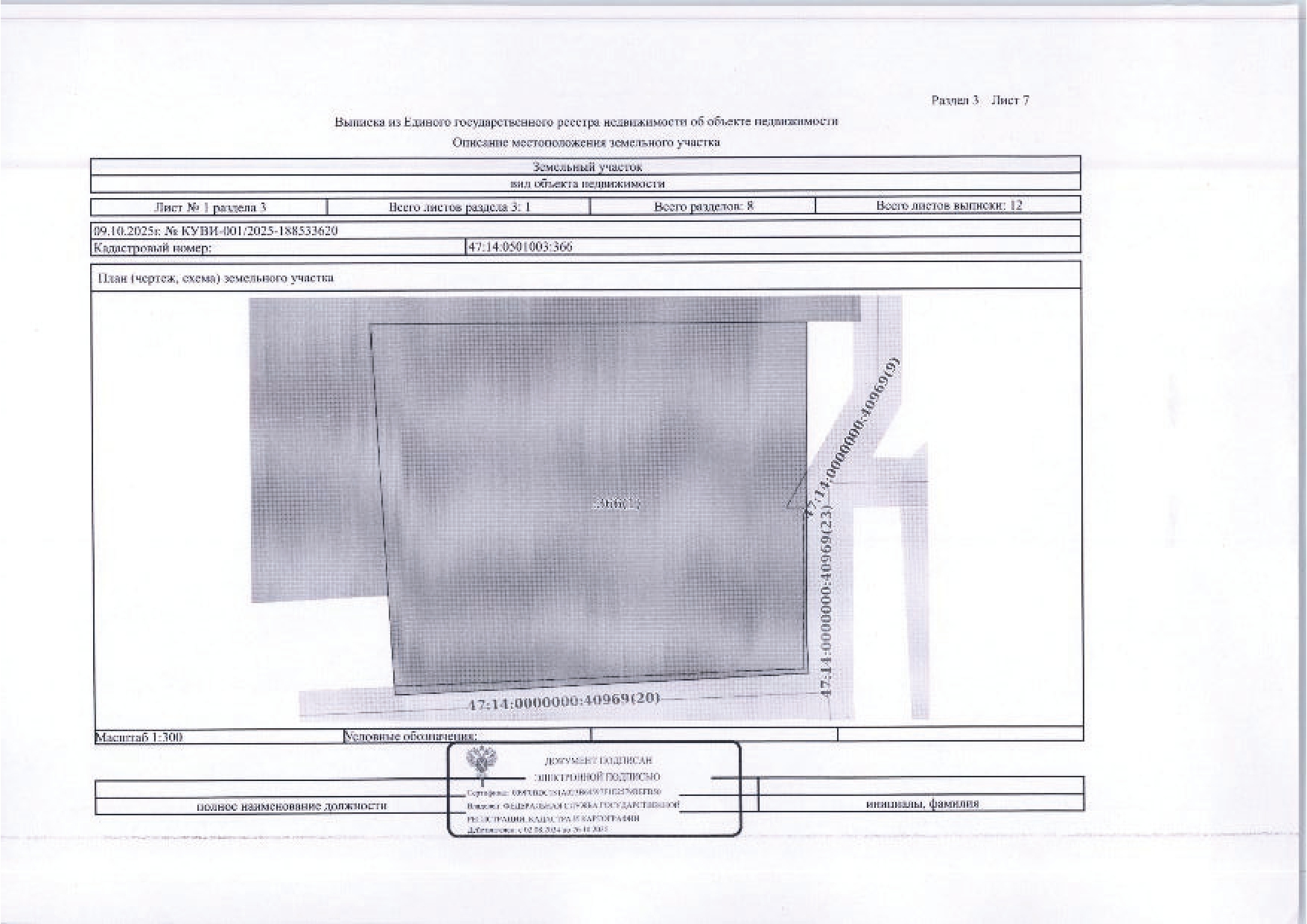 Земельный участок площадью 1000 +/- 11 кв.м, кад. № 47:14:0501003:366, расположенный по адресу: Ленинградская область, Ломоносовский район, МО Аннинское городское поселение, д. Алакюля