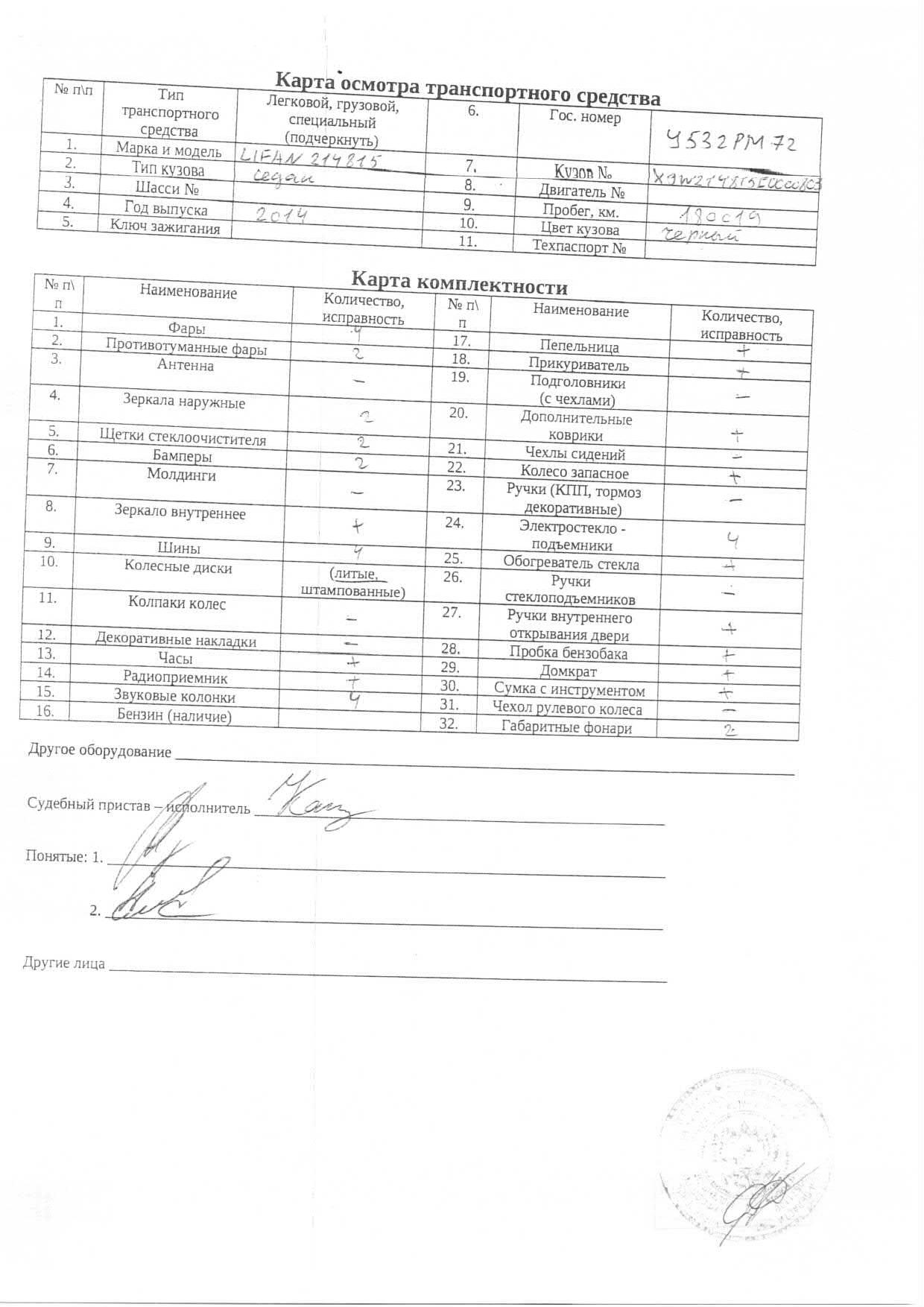 Транспортное средство, легковой седан, LIFAN 214815, 2014 г.в., г/н У532РМ72, VIN: X9W214815E0000803, рег.№ 72-0105-53;