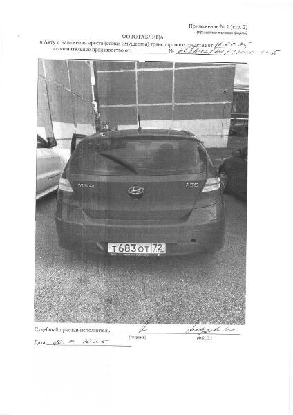 Транспортное средство, легковой автомобиль, HYUNDAI I30 1,6MT GLS, 2010 г.в., г/н Т683ОТ72, VIN: TMADC51DABJ150415, рег.№ 72-0105-16;