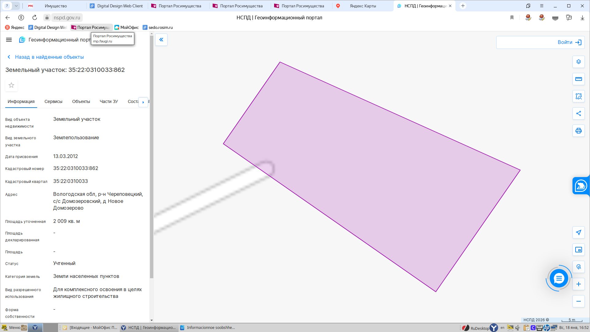 Земельный участок, площадью 2009 кв.м., кадастровый номер 35:22:0310033:862, расположенный по адресу: Вологодская область, Череповецкий район, с/с Домозеровский, д. Новое Домозерово
