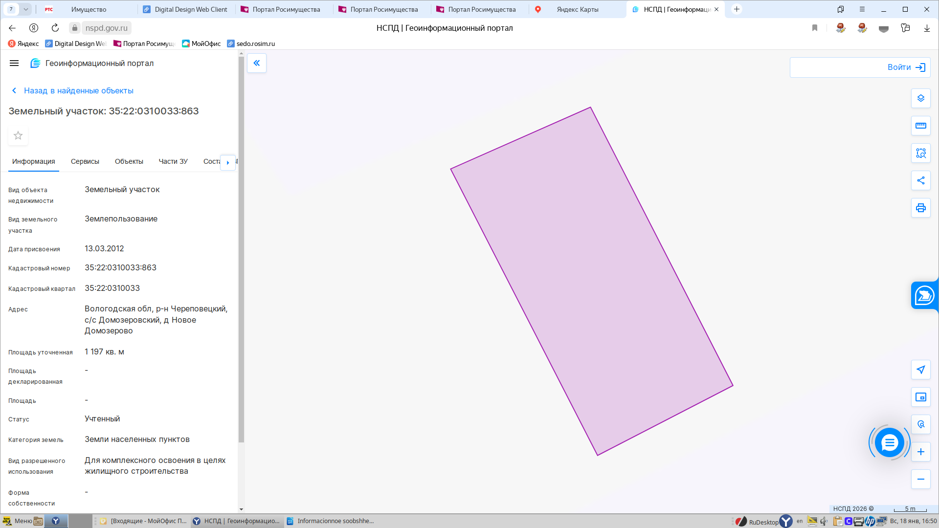 Земельный участок, площадью 1197 кв.м., кадастровый номер 35:22:0310033:863, расположенный по адресу: Вологодская область, Череповецкий район, с/с Домозеровский, д. Новое Домозерово 1 Штука (шт)