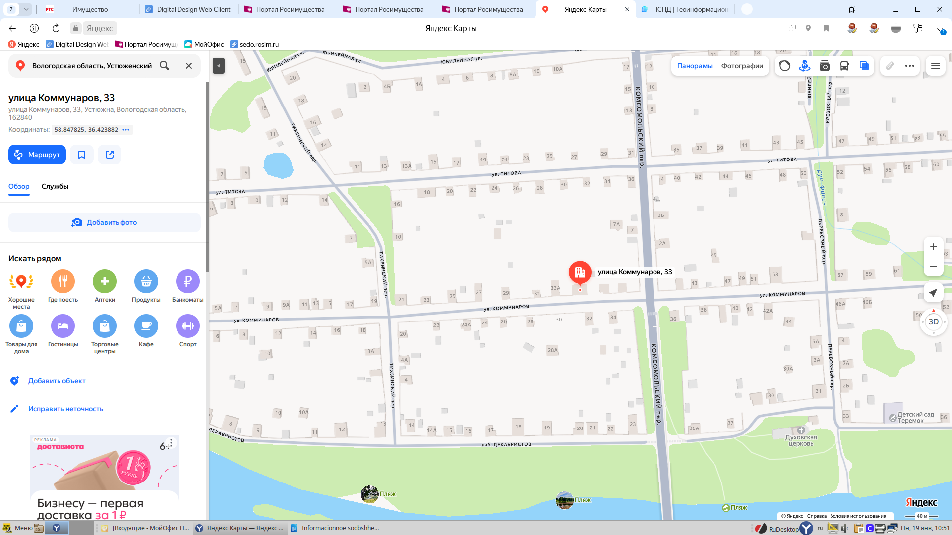 Жилое помещение (квартира), площадью 38,7 кв.м., кадастровый номер 35:19:0101003:262, расположенной по адресу: Вологодская область, Устюженский район, г. Устюжна, ул. Коммунаров, д.33,кв. 4 1 Штука (шт)