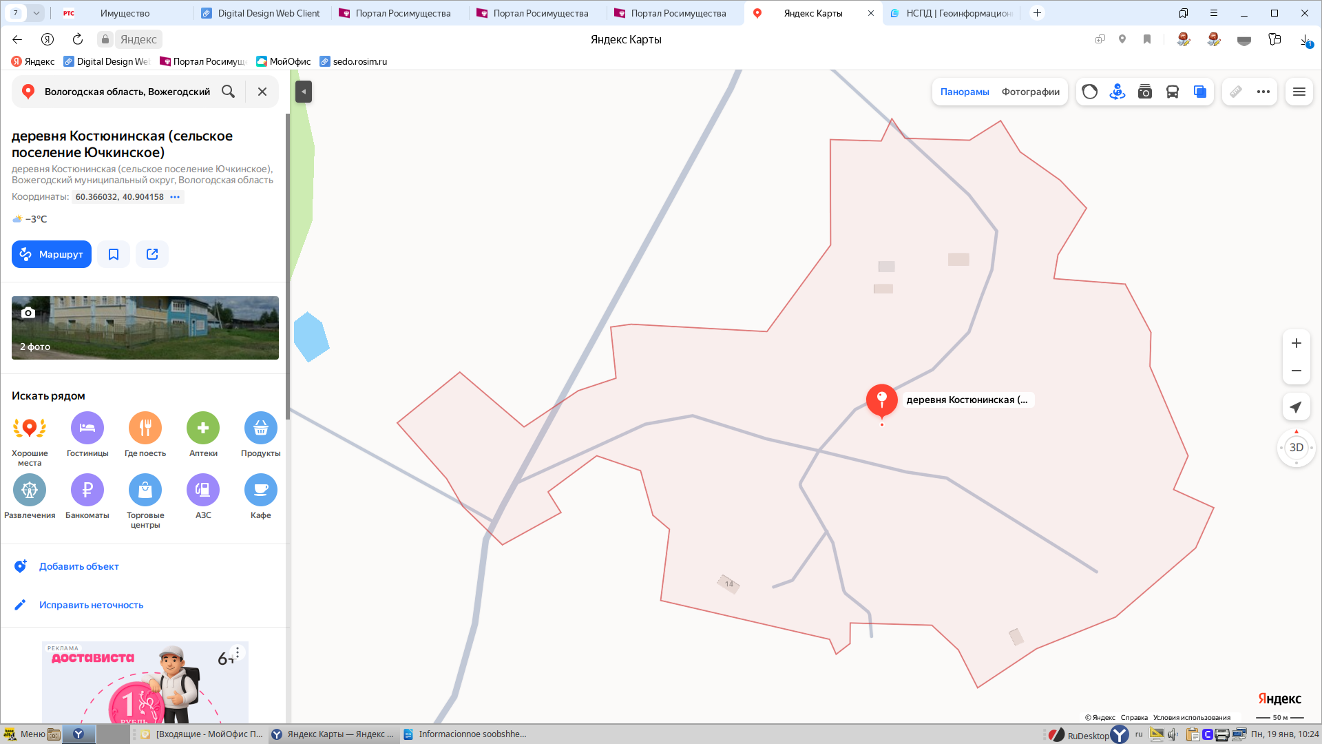 Здание, площадью 59,3 кв.м., кадастровый номер 35:06:0501012:382, расположенное по адресу: Вологодская область, Вожегодский район, с/п Митюковское, д. Костюнинская, д.44