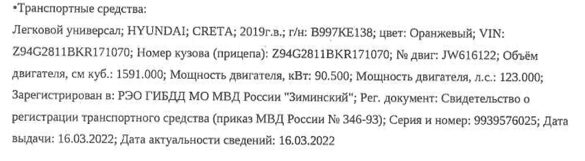 Автотранспортное средство Hyundai Creta, 2019 года выпуска, идентификационный номер (VIN) Z94G2811BKR171070.