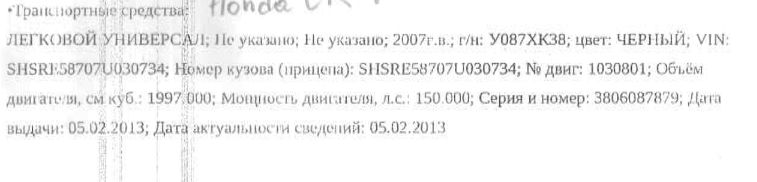 Автотранспортное средство Honda CR-V, 2007 года выпуска, идентификационный номер (VIN) SHSRE58707U030734.