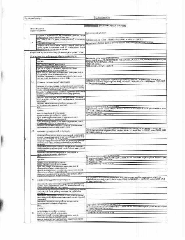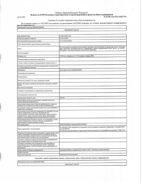 Должник: Ядрышникова С.В., собственник: Ядрышникова С.В. Лот: Земельный участок (земли населенных пунктов, для садоводства и огородничества), площадь 1500 кв.м., кадастровый номер: 72:08:0108004:100, г. Заводоуковск, тер. СОТ Колос, уч.100, н/ц: 801000 р., з-к: 120150 р., код: 0001, рег.№ 72-010720(26);