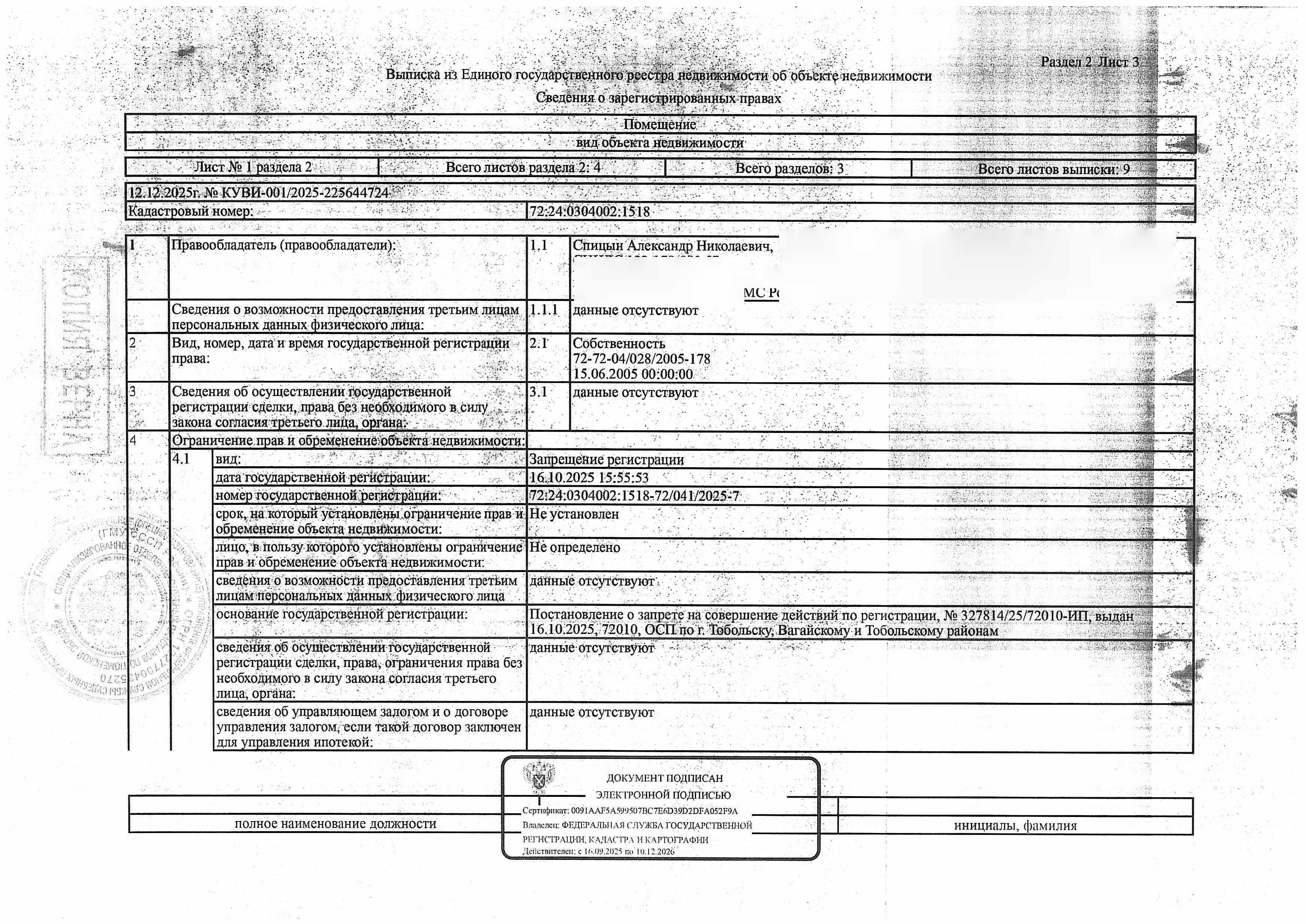 Должник: Спицын А.Н, собственник: Спицын А.Н. Лот: Нежилое помещение (гараж), площадь 24,8 кв.м., кадастровый номер: 72:24:0304002:1518, г. Тобольск, ул. Семена Ремезова, №111г, блок 6, гараж 363, н/ц: 541200 р., з-к: 81180 р., код: 0001, рег.№ 72-011125-ГМУ;
