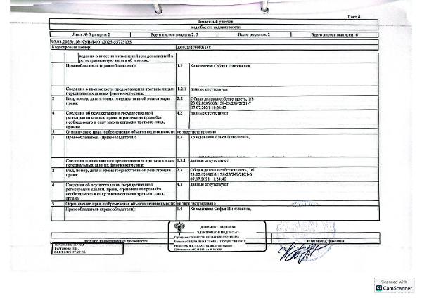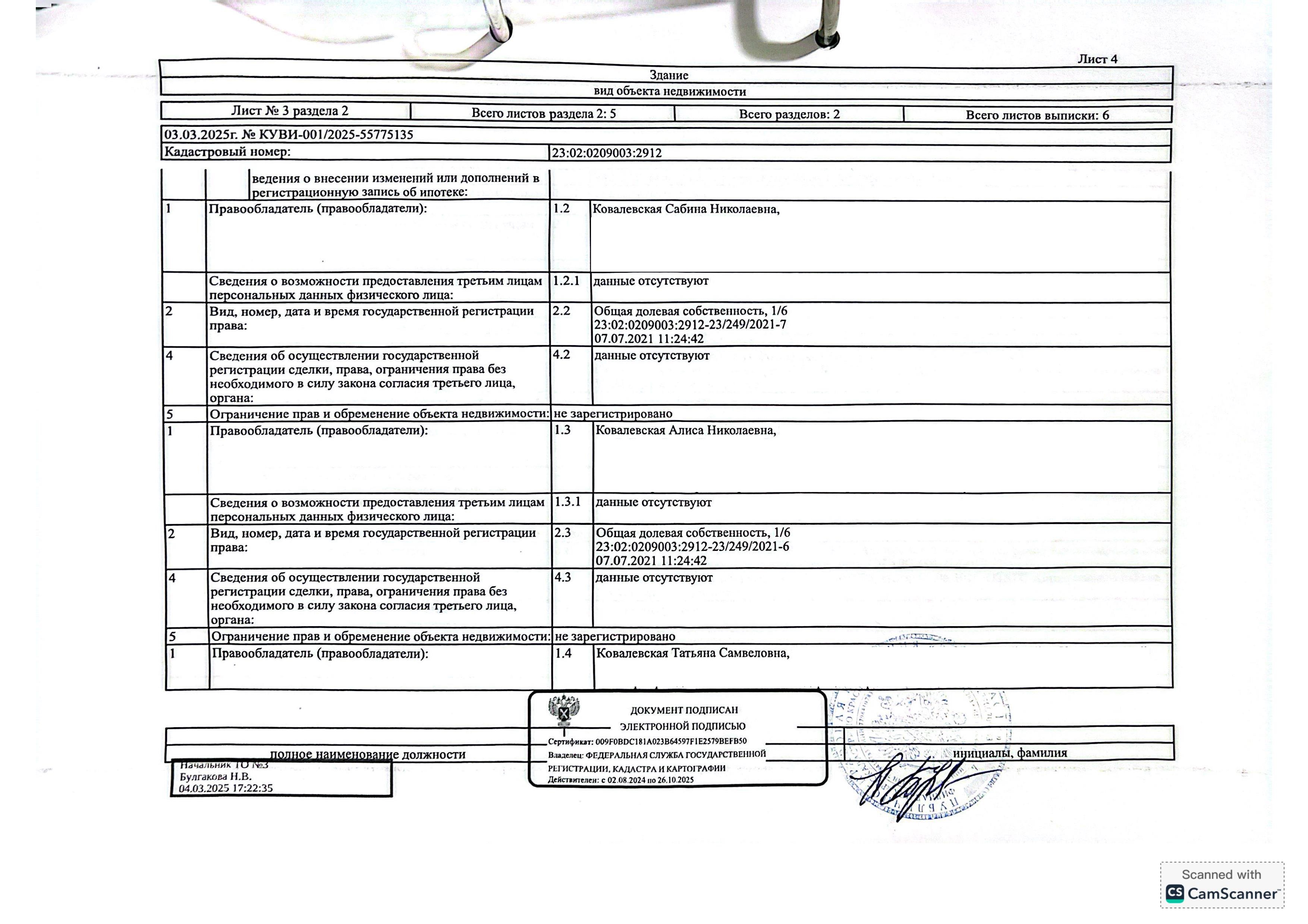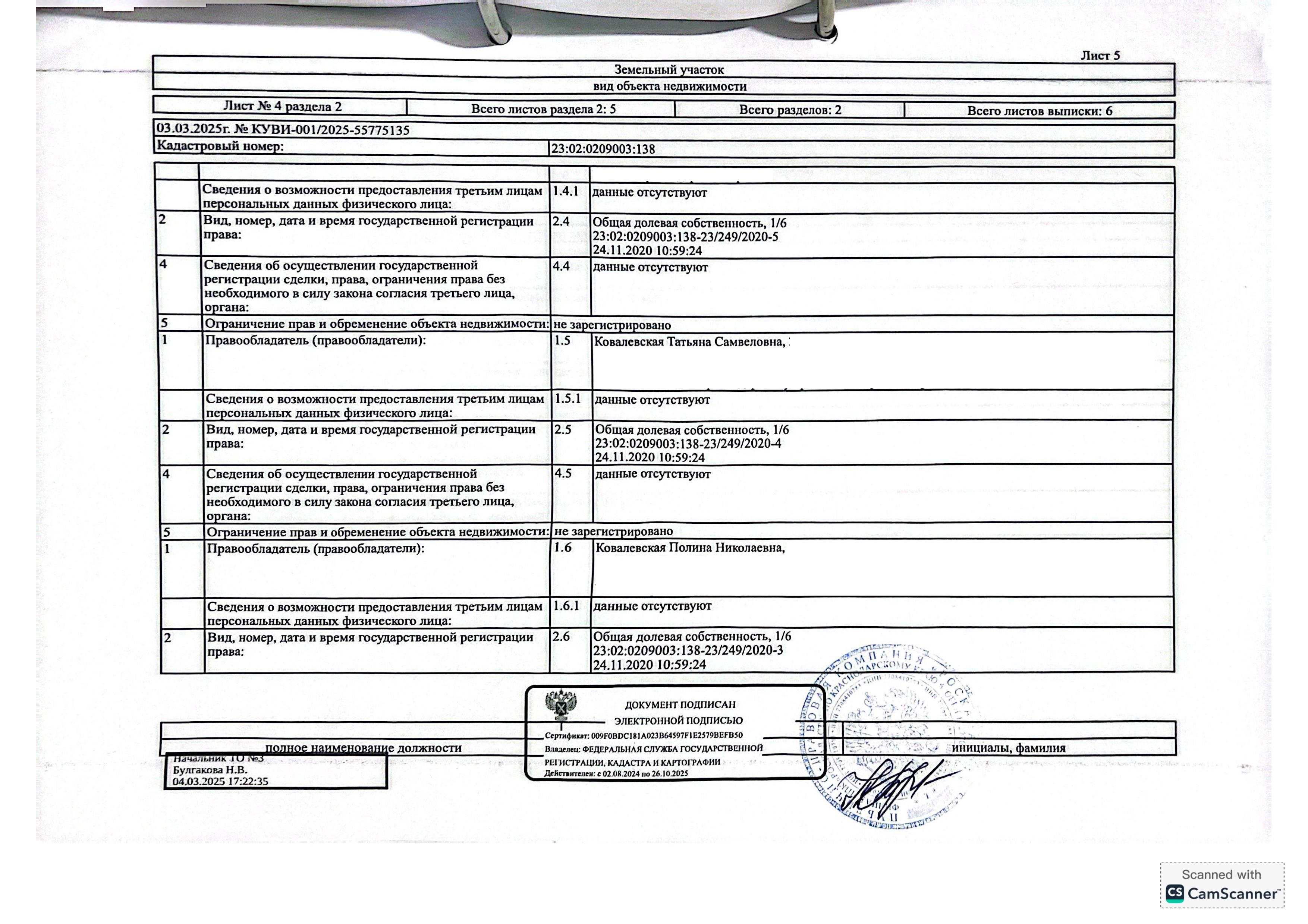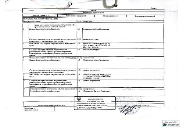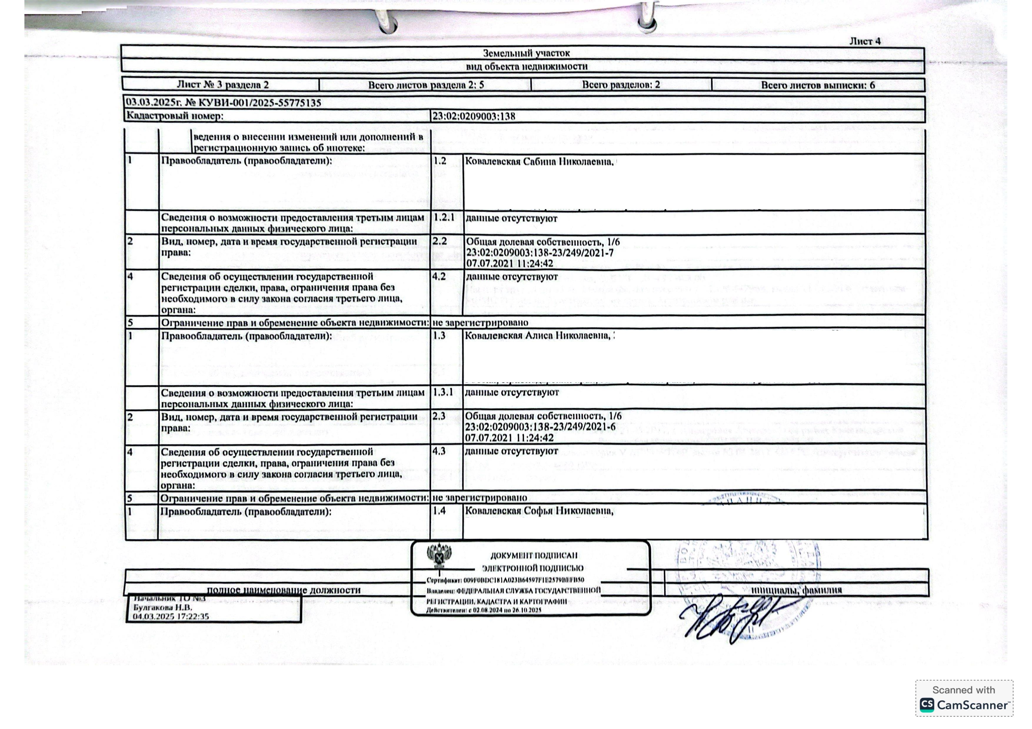 Д-к: Ковалевский Н.Н. 1/6 доля общей долевой собственности жилого здания, площадь 35,8 кв.м., кадастровый номер 23:02:0209003:2912. 1/6 доля общей долевой собственности земельного участка (для ведения подсобного хозяйства), площадь 1500 кв.м., кадастровый номер 23:02:0209003:138. Адрес: Краснодарский край, Апшеронский район, х. Калинина, ул. Ленина, д. 56. Границы земельного участка не установлены в соответствии с требованиями земельного законодательства. Начальная цена 238 413,10 руб., задаток 35 762 руб., шаг аукциона 2 385 руб., ув. 1506
