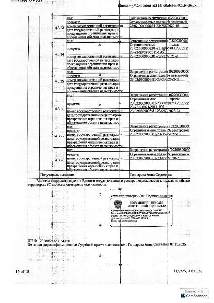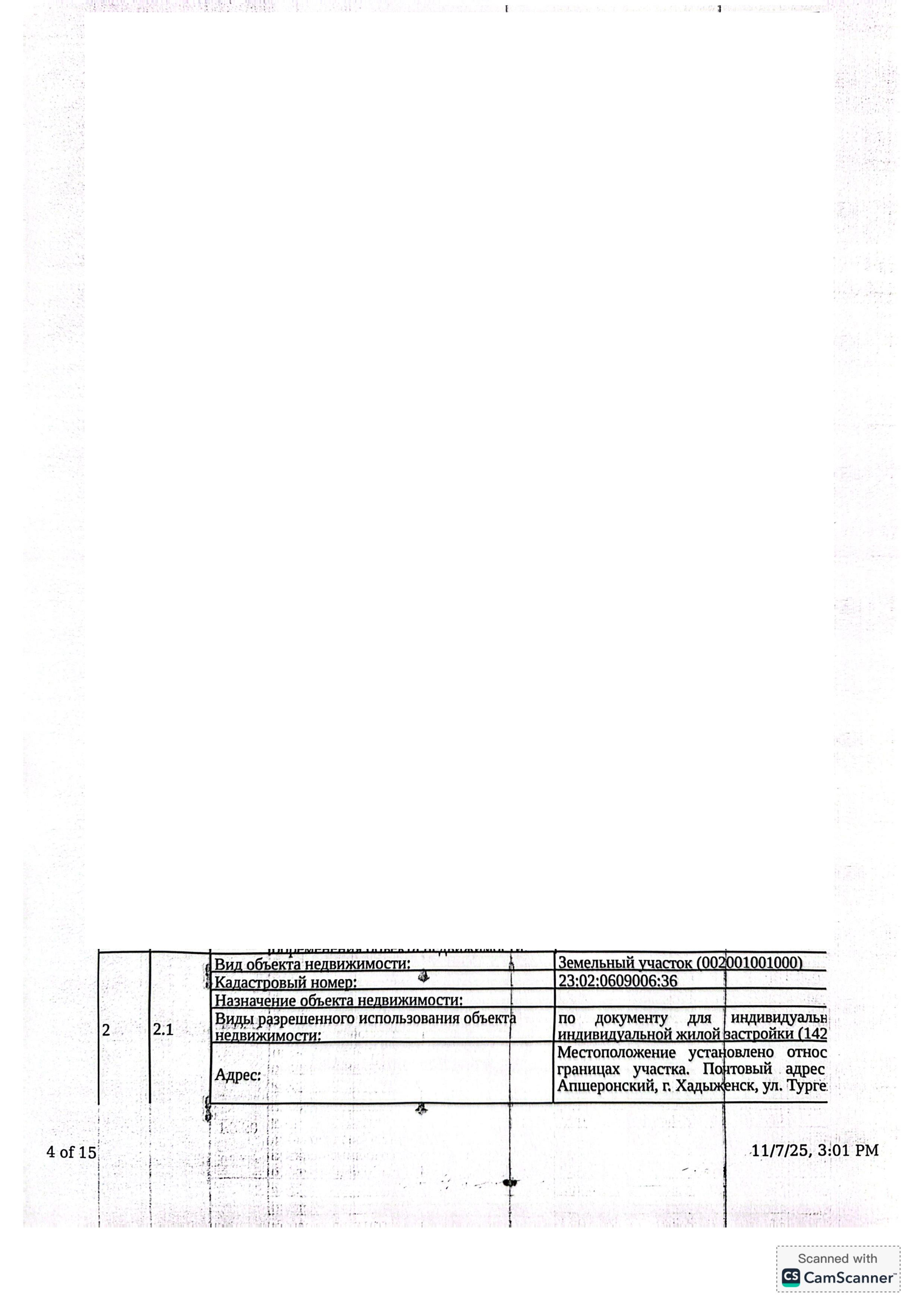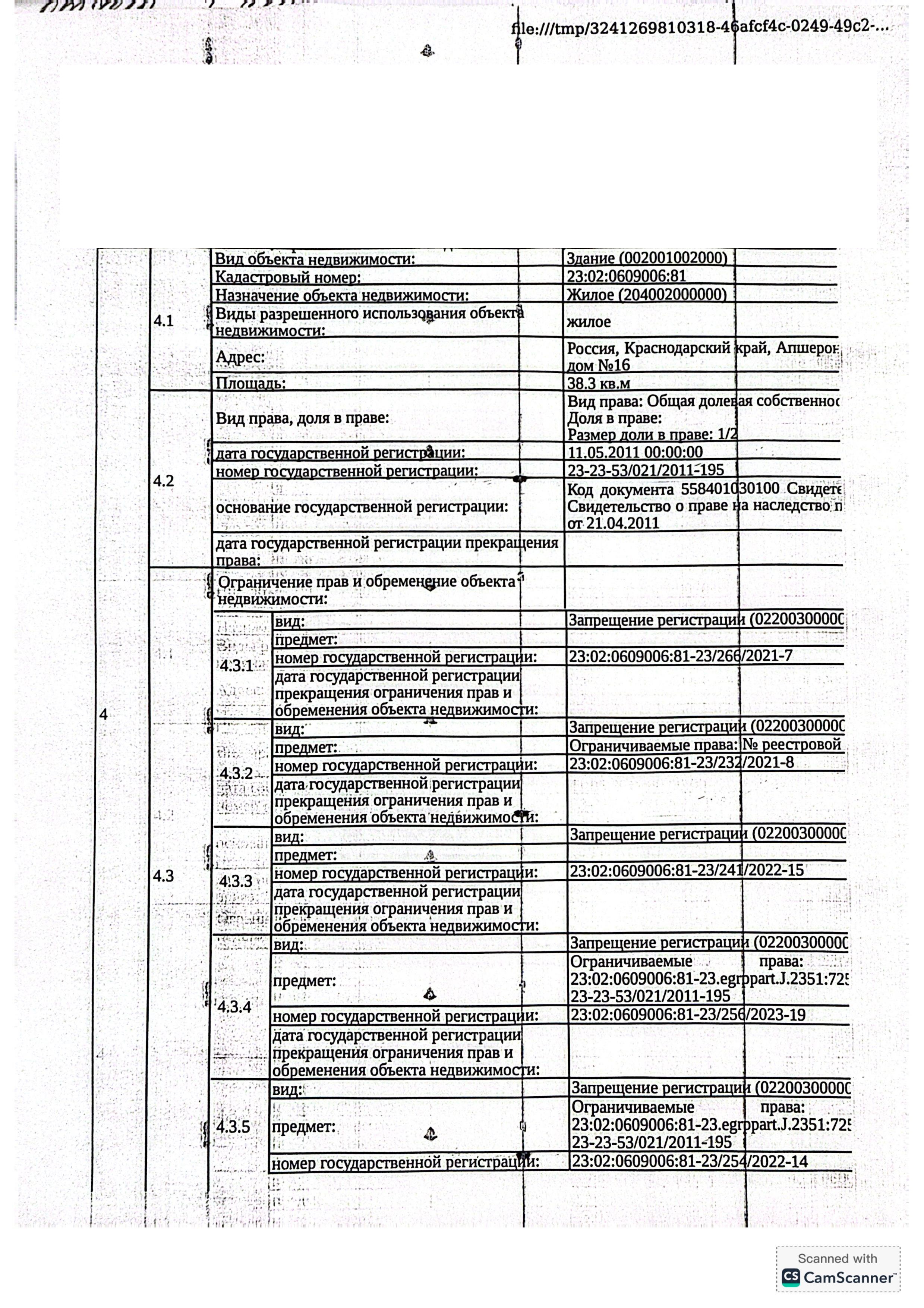 Д-к: Мисенко А.В. 1/2 доля жилого здания, площадь 38,3 кв.м., кадастровый номер 23:02:0609006:81. 1/2 доля земельного участка (для индивидуального жилищного строительства), площадь 600 кв.м., кадастровый номер 23:02:0609006:36. Адрес: Краснодарский край, Апшеронский район, г. Хадыженск, ул. Тургенева, д. 16. Границы земельного участка не установлены в соответствии с требованиями земельного законодательства. Начальная цена 927 400 руб., задаток 139 110 руб., шаг аукциона 9 274 руб., ув. 1720