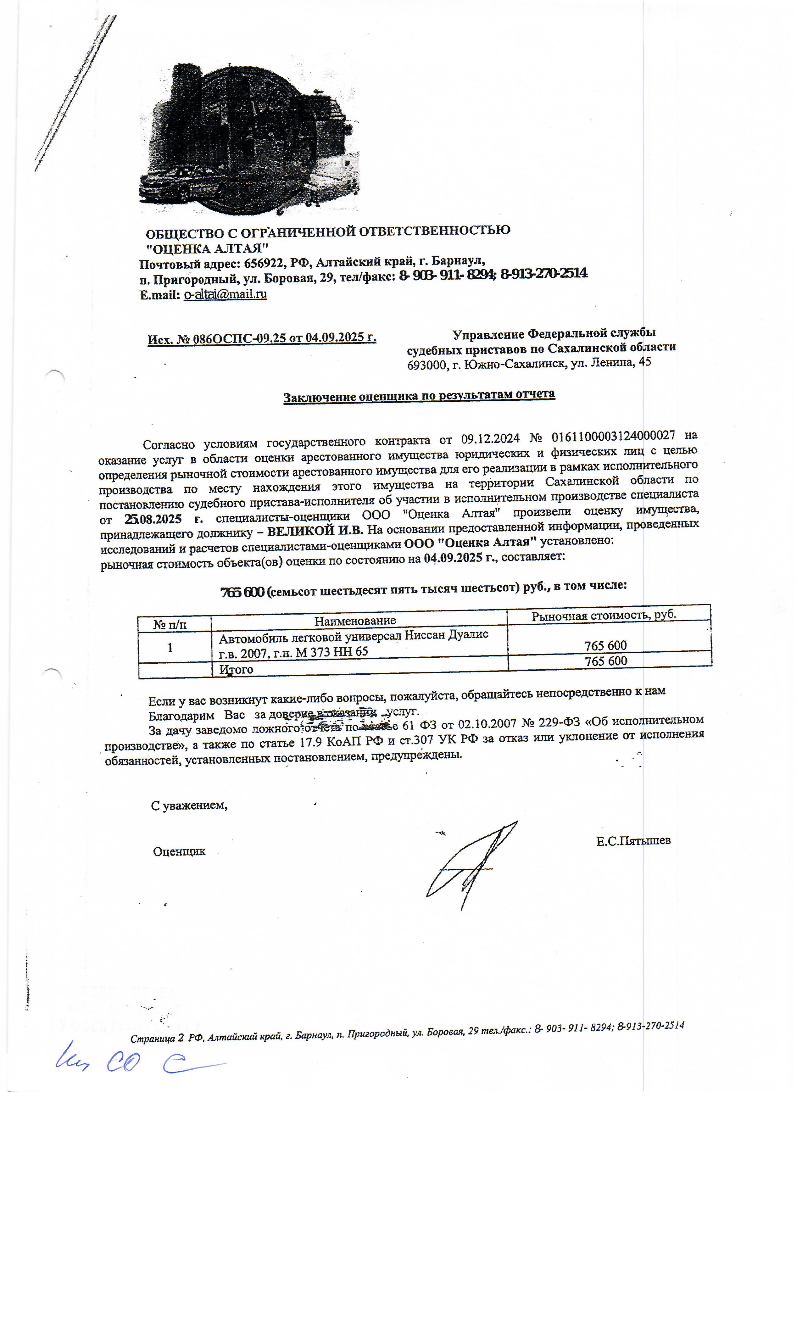Автомобиль NIssan Dualis, г/в 2007, г/н М373НН65, № двиг. 350831А. Место нахождения: Сахалинская область, ул. Ленина 314. Должник: Великая И.В. Обременение: арест.
