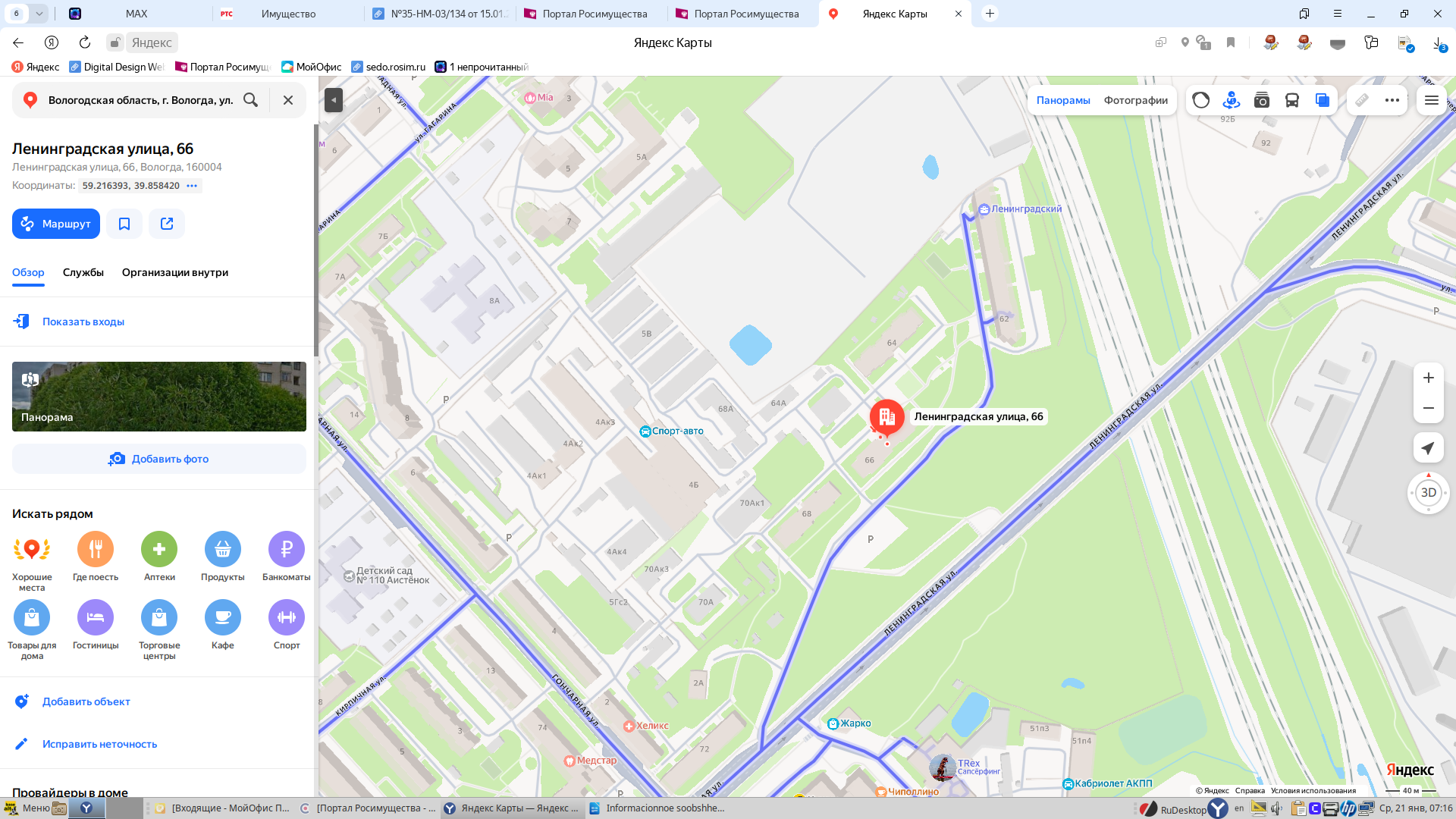 Квартира, площадью 43,3 кв.м., кадастровый номер 35:24:0401002:738, расположенная по адресу: Вологодская область, г. Вологда, ул. Ленинградская, д.66,кв. 909