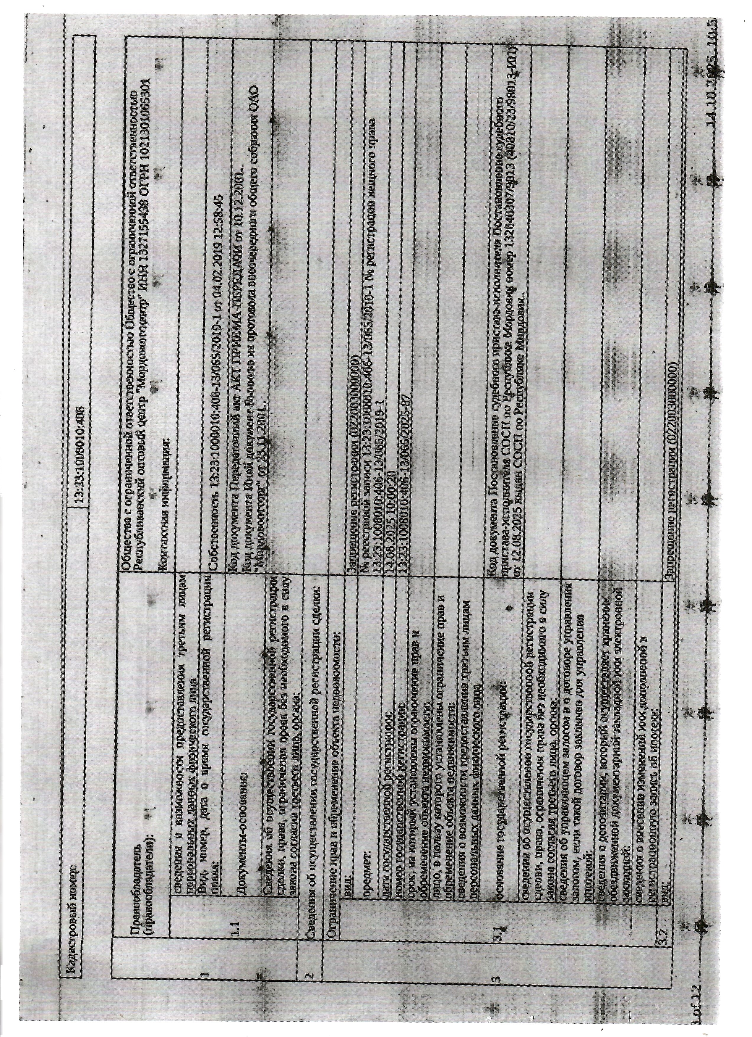 Нежилое помещение общей площадью 2 058,6 кв.м., кад. № 13:23:1008010:406, расположенное в пределах объекта недвижимости с кад. № 13:23:1008010:179, принадлежащее должнику ООО Республиканский оптовый центр «Мордовоптцентр», ИНН 1327155438. Здание расположено на земельном участке, находящемся в муниципальной собственности. Сведениями о фактическом состоянии объекта недвижимости, о задолженности по коммунальным платежам организатор торгов не располагает. Техническая документация на объект недвижимости и его фотографии отсутствуют у организатора торгов.