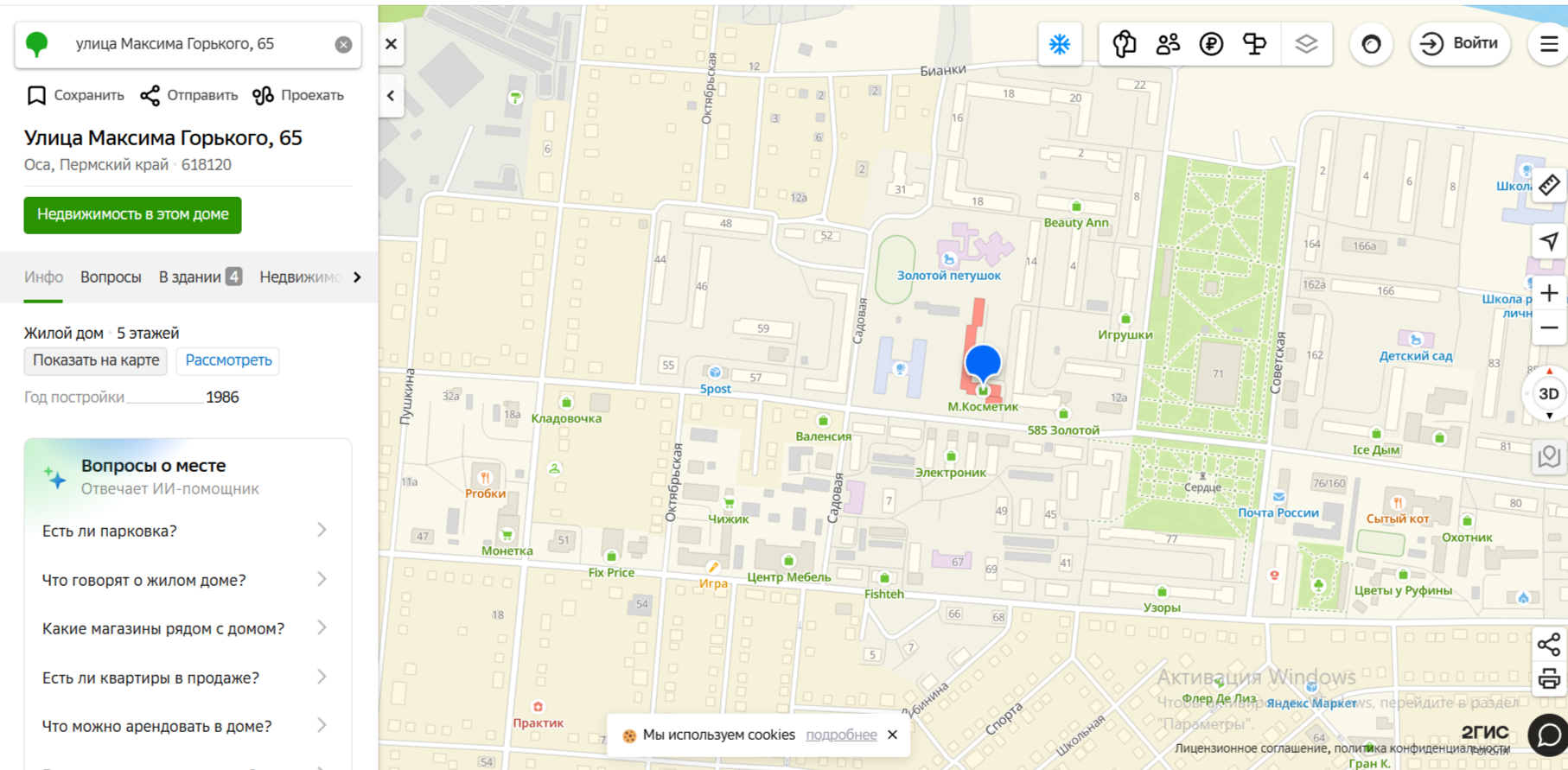 1/2 доли в праве общей долевой собственности на 2-комнатную квартиру, общ.пл.47,9кв.м., кад.№59:29:0010209:218, соб-к: Гилев И. Д., адрес: Пермский край, г.Оса, ул.Максима Горького,65-62 (Сведения о зарегистрированных лицах и капремонте отсутствуют)