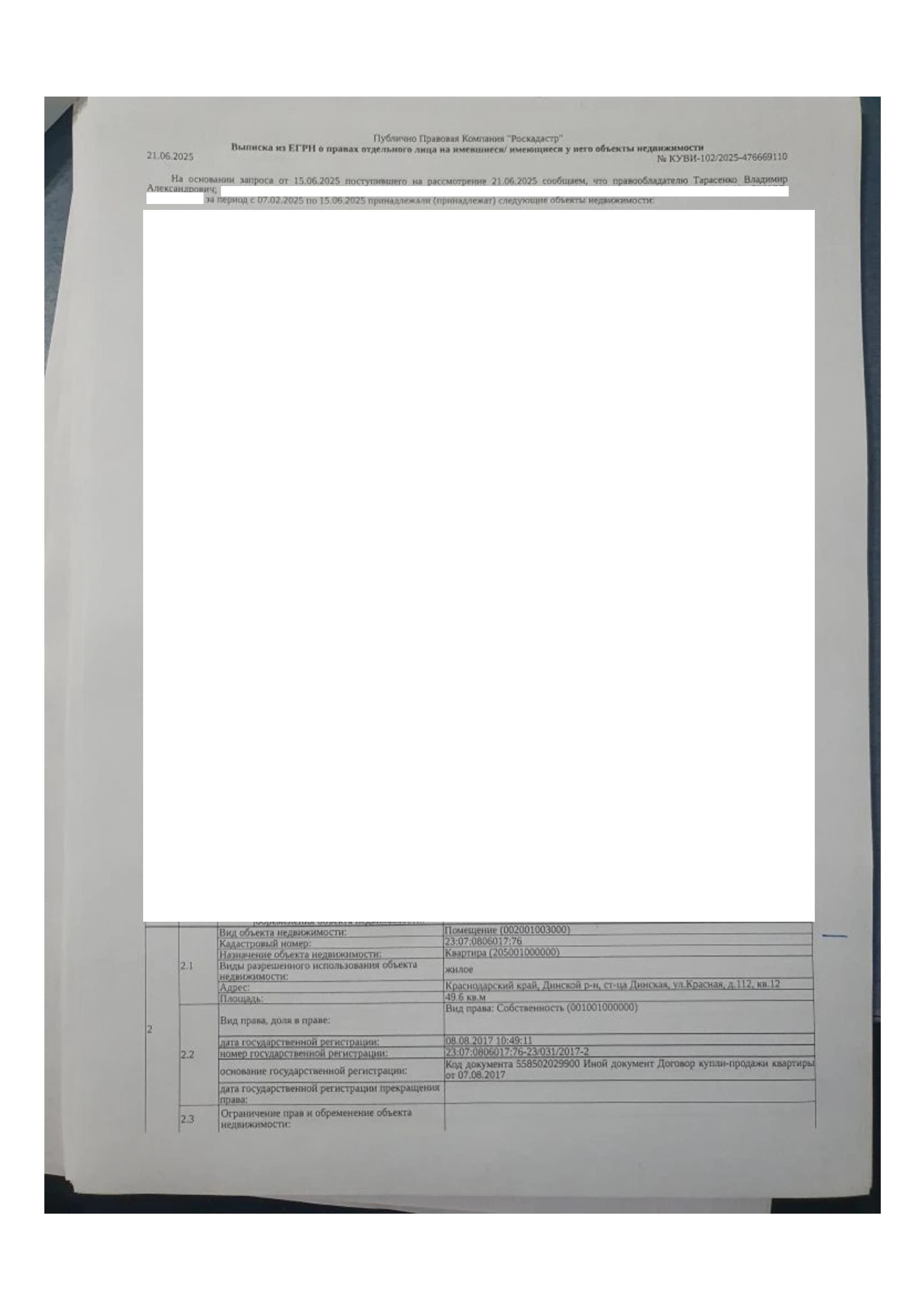 Д-к: Тарасенко В.А. Квартира, площадь 49,6 кв.м., кадастровый номер 23:07:0806017:76. Адрес: Краснодарский край, Динской район, ст. Динская, ул. Красная, д. 112, кв. 12. Начальная цена 2 051 000 руб., задаток 2 051 руб., шаг аукциона 20 510 руб., ув. 1823