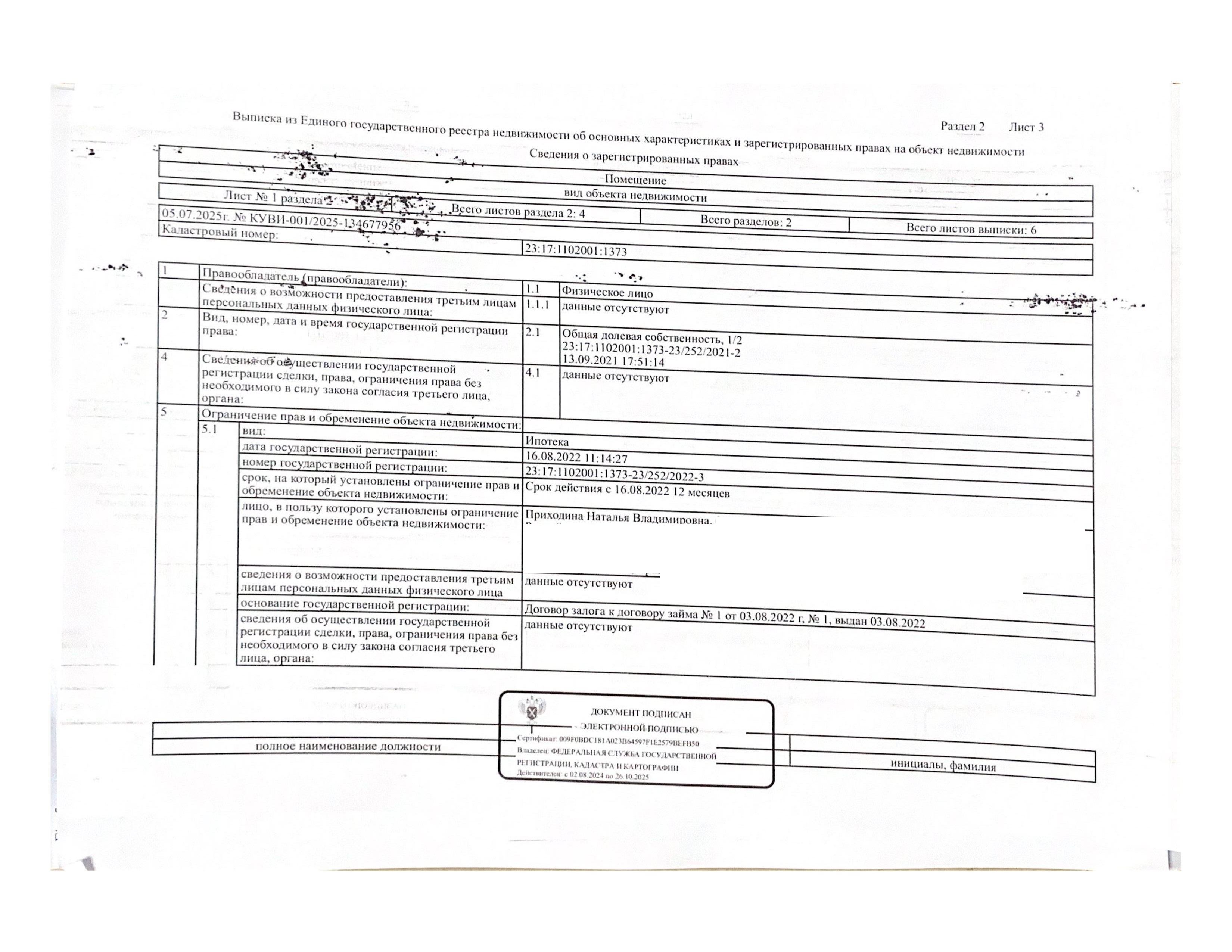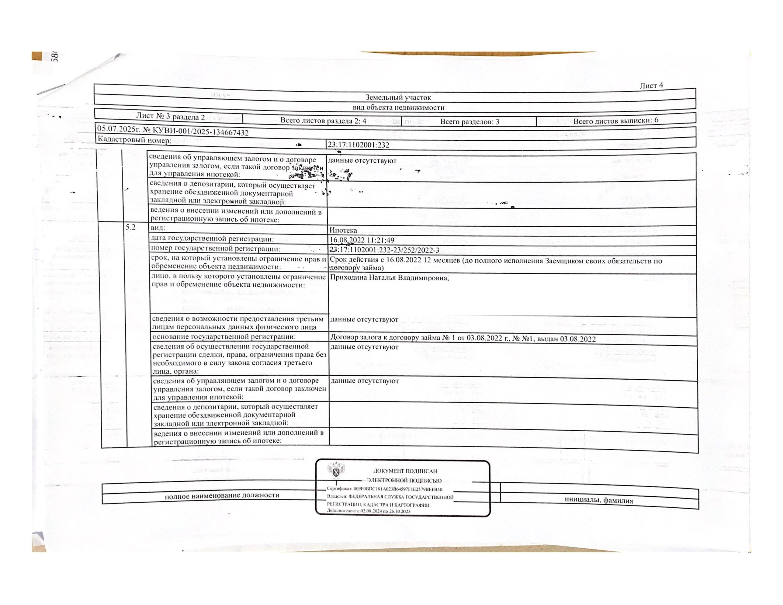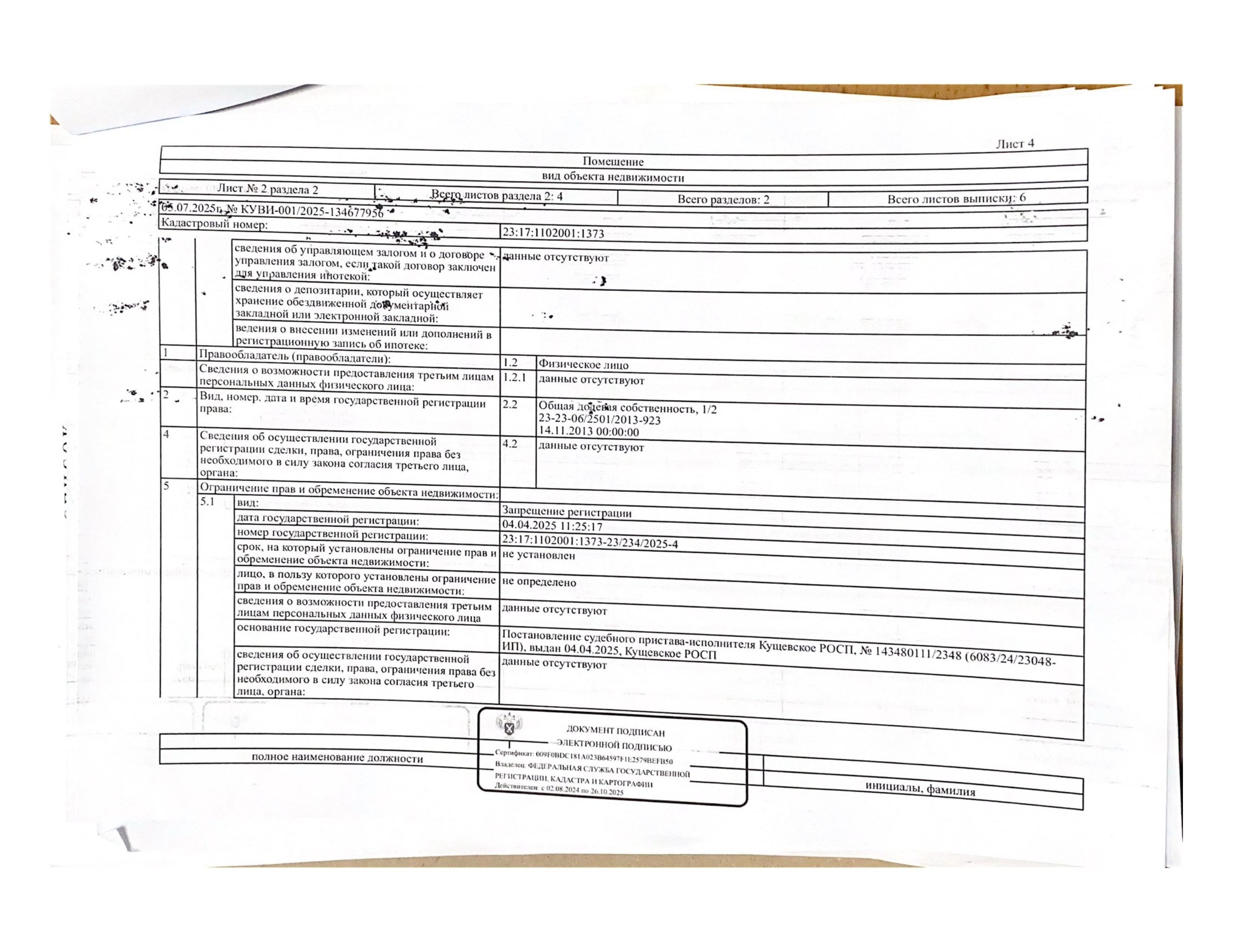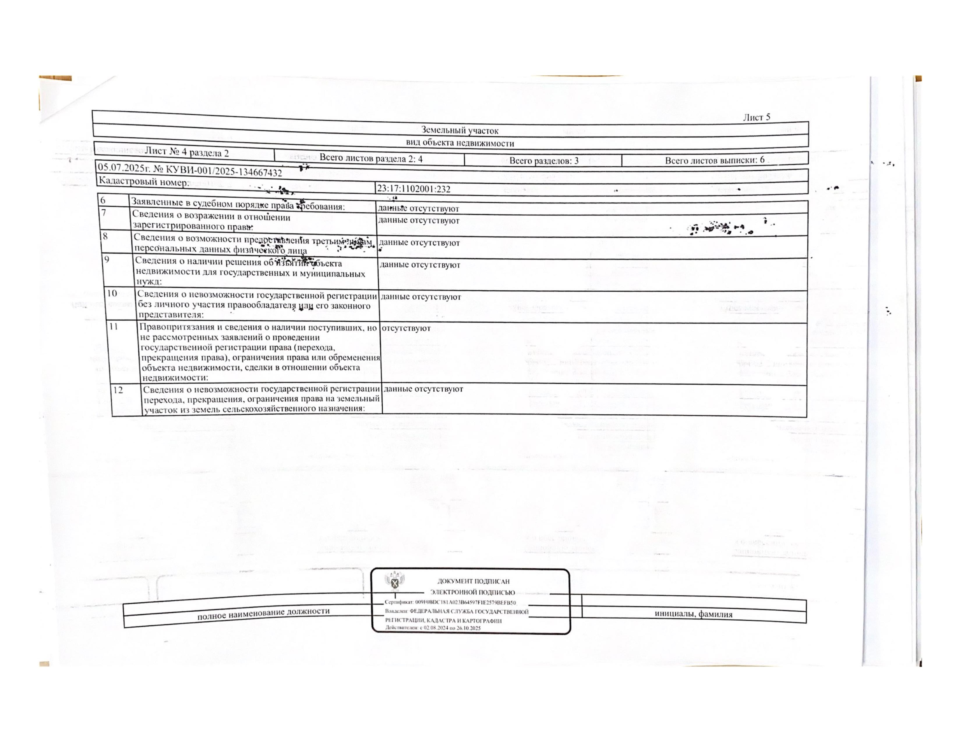 Д-к: Войтенко В.С. Квартира, площадь 97,1 кв.м., кадастровый номер 23:17:1102001:1373, земельный участок (для эксплуатации индивидуального жилого дома), площадь 622+/–17 кв.м., кадастровый номер 23:17:1102001:232. Адрес: Краснодарский край, Кущевский район, Первомайский с/о, пос. Первомайский, ул. Красная, д. 6, кв. 1. Начальная цена 1 275 000 руб., задаток 1 275 руб., шаг аукциона 12 750 руб., ув. 1485